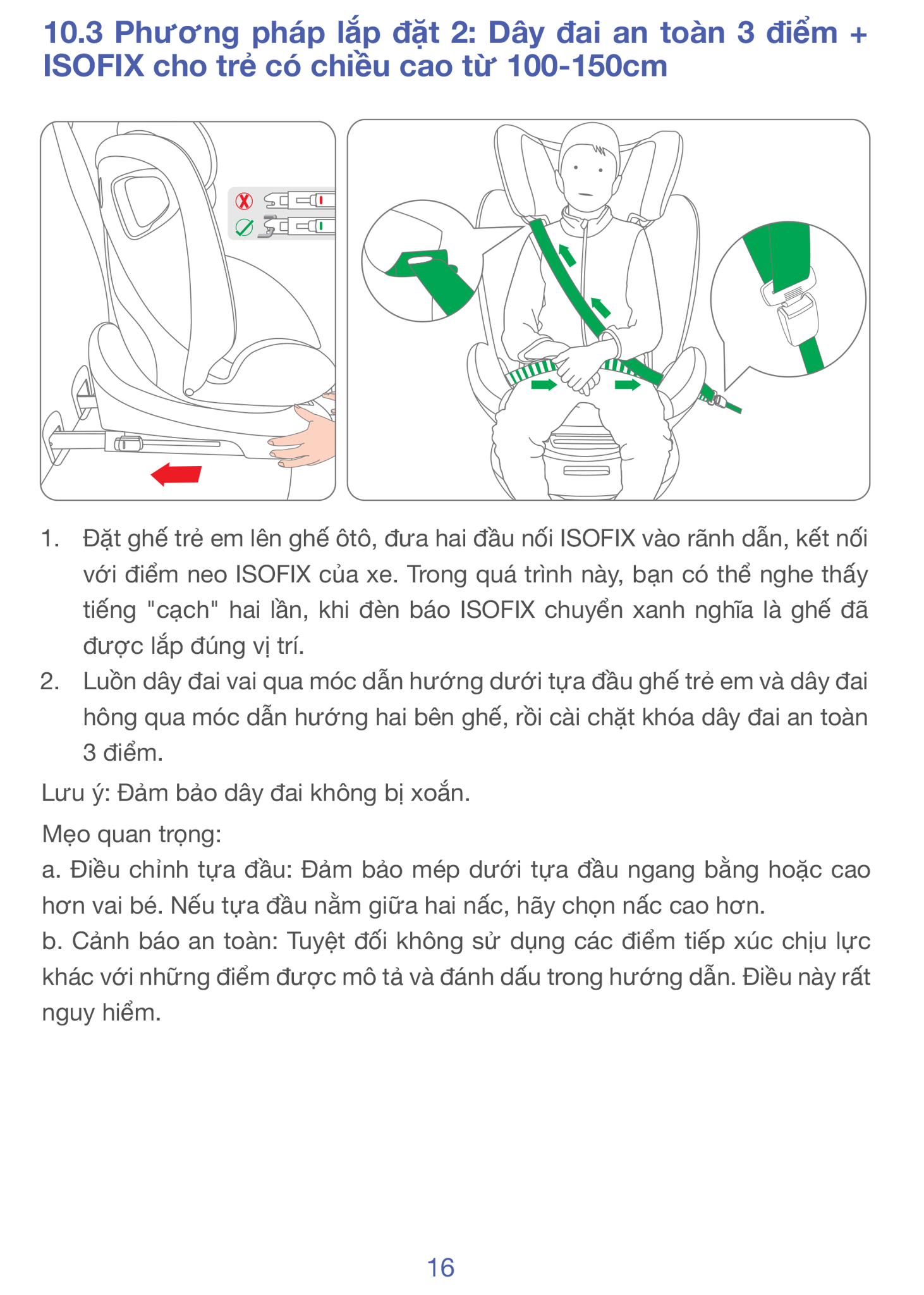 ISOFIX + Top Tether cố định chắc chắn.