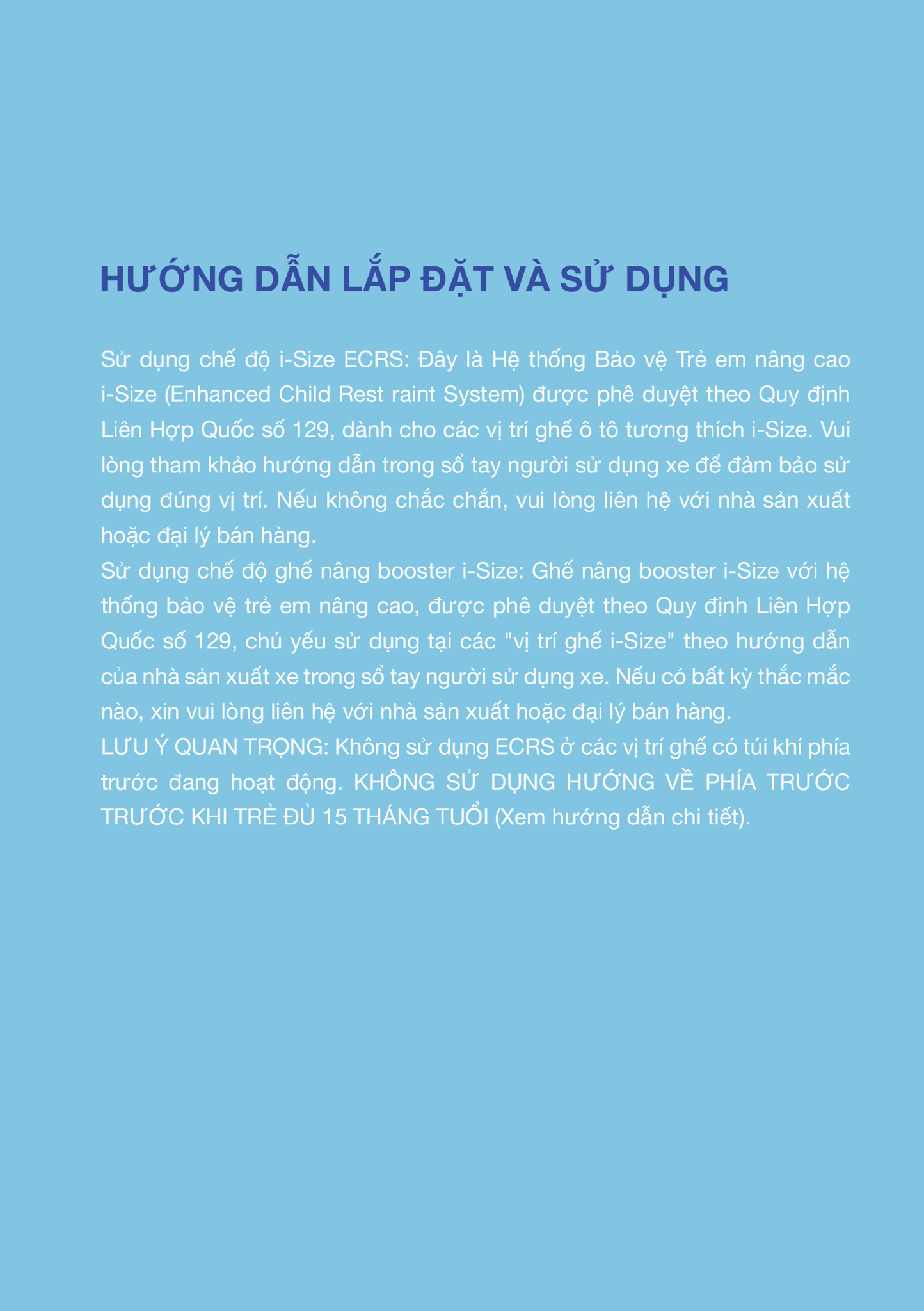 • Chuẩn an toàn i-Size mới nhất.