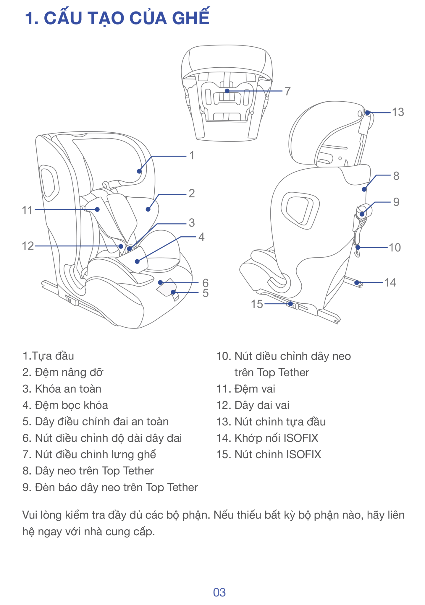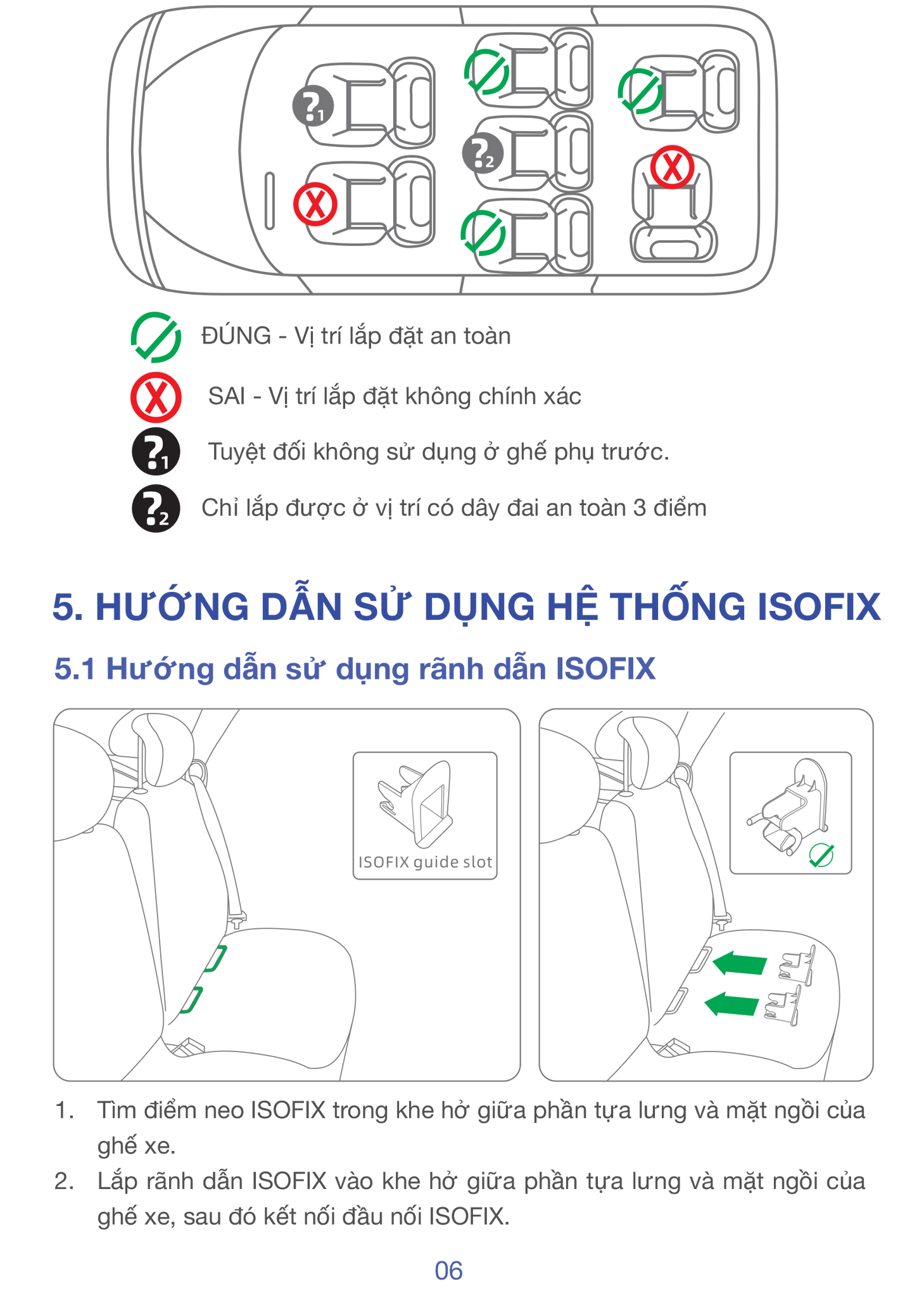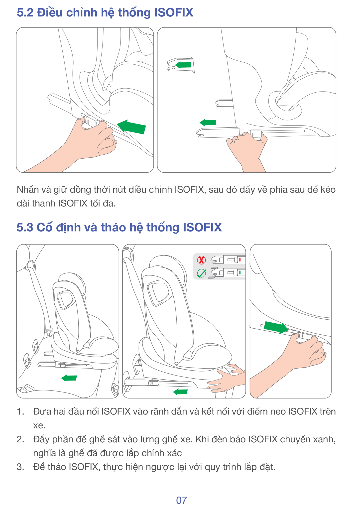 • ISOFIX cố định thân ghé xuống khung xe.
