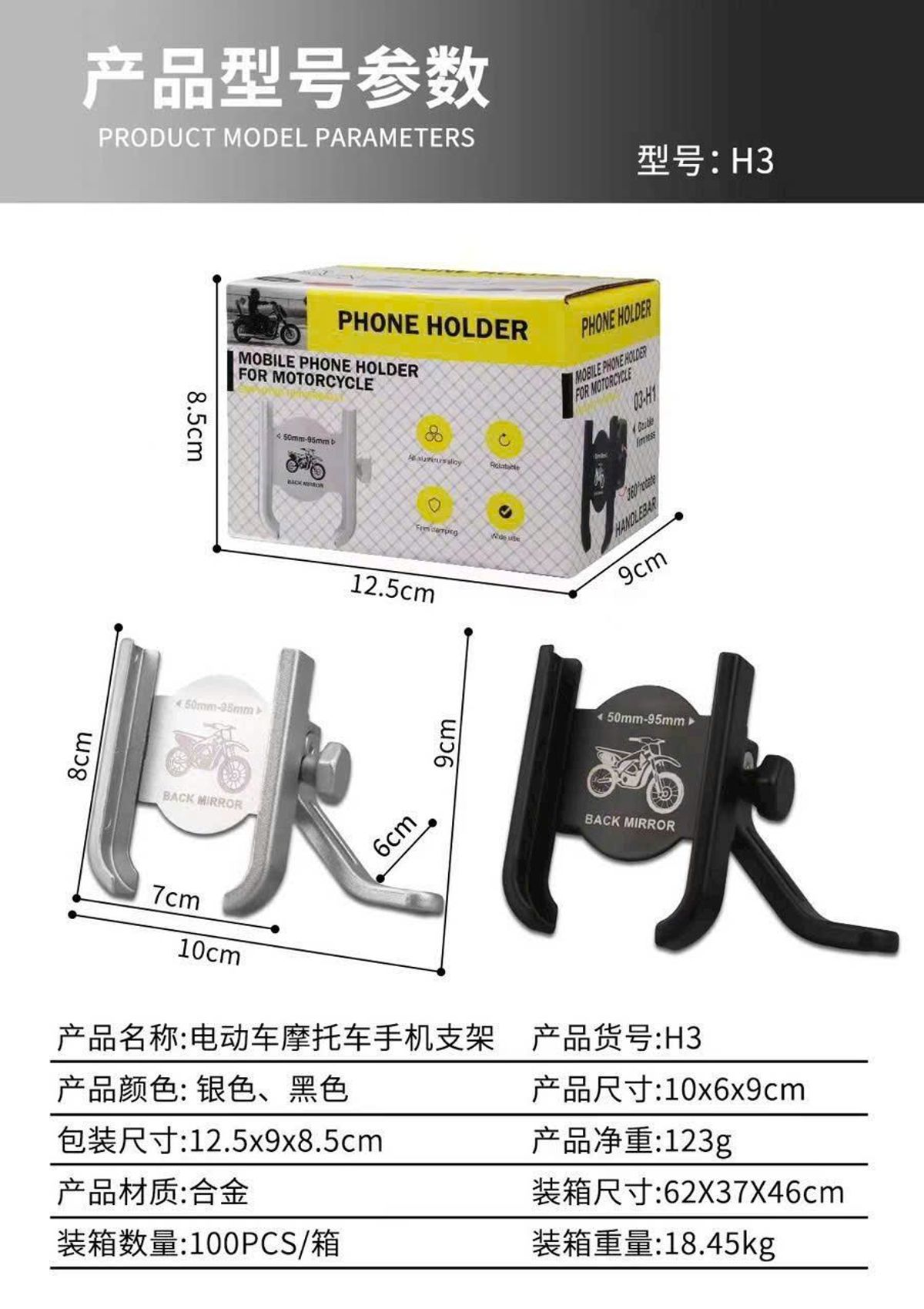 Giá đỡ điện thoại xe máy 03 - H2 là một sản phẩm thiết yếu dành cho các tín đồ mê xê dịch, giúp giữ điện thoại của bạn một cách an toàn và chắc chắn trong suốt hành trình. Sản phẩm được chế tác từ hợp kim nhôm cao cấp, mang lại độ bền và chắc chắn, đảm bảo khả năng chịu lực tốt ngay cả trên những đoạn đường gập ghềnh.