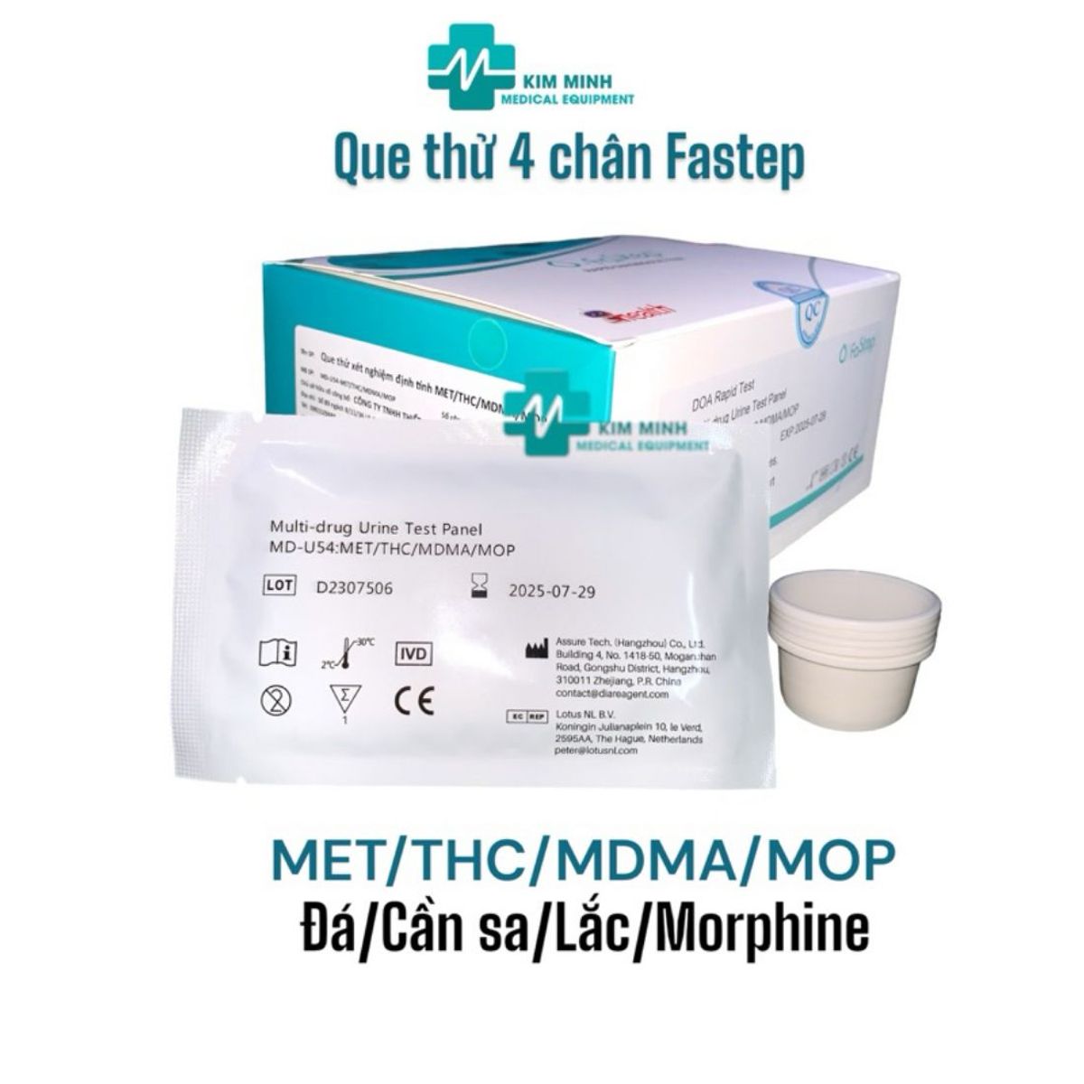 Sản phẩm được dùng để kiểm tra các đối tượng sử dụng chất gây nghien Que thử ma tuý 4 chân phát hiện 4 chất trên cùng 1 que.