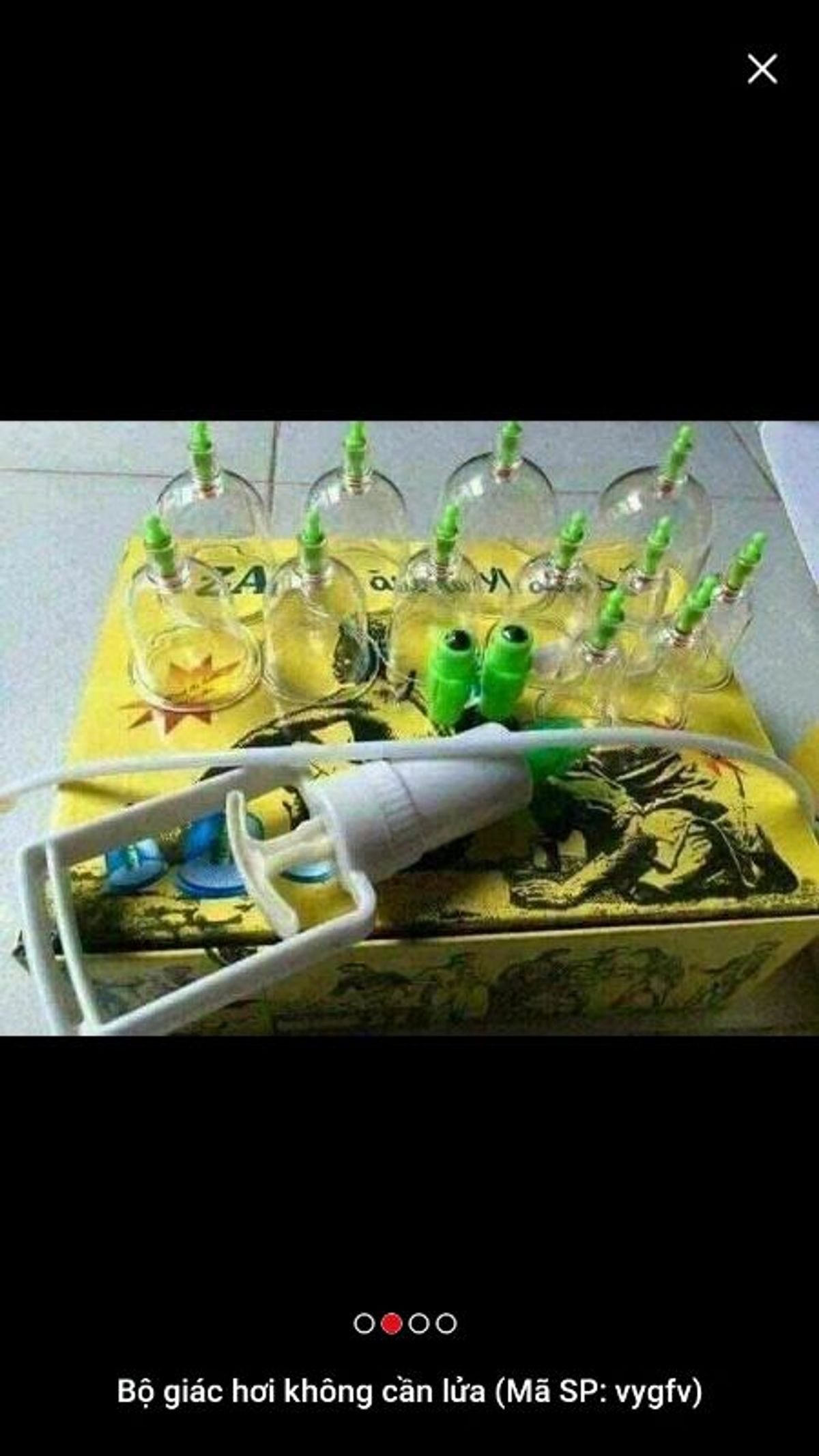 Sản phẩm gồm 1 dụng cụ hút chân không và 10 ly giác được làm bằng nhựa trong suốt, giúp quan sát tình trạng da của người sử dụng.