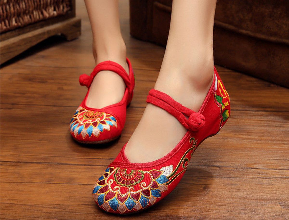 - Giày búp bê thêu hoa