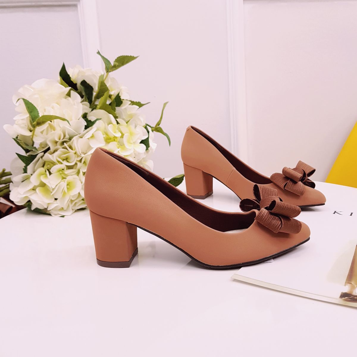 Gót trụ 5 cm, dưới đế có rãnh chống trượt cho bước chân thoái mái, tự tin.
