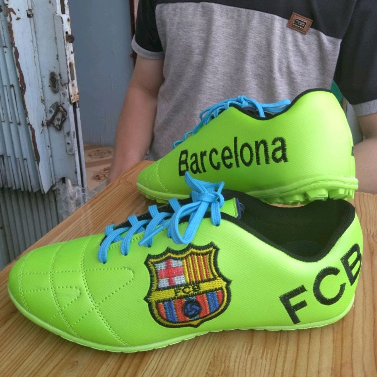 giày đá bóng FCB xanh chuối thêu logo may đế giá sỉ - giá bán buôn