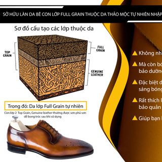 Cấu tạo sản phẩm Giày da nam công sở thủ công cao cấp giayhuyhoang Oxford O2578