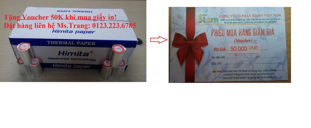 Khi mua 1 thùng giấy in nhiệt K57 hoặc giấy in nhiệt K80 tặng luôn Voucher
