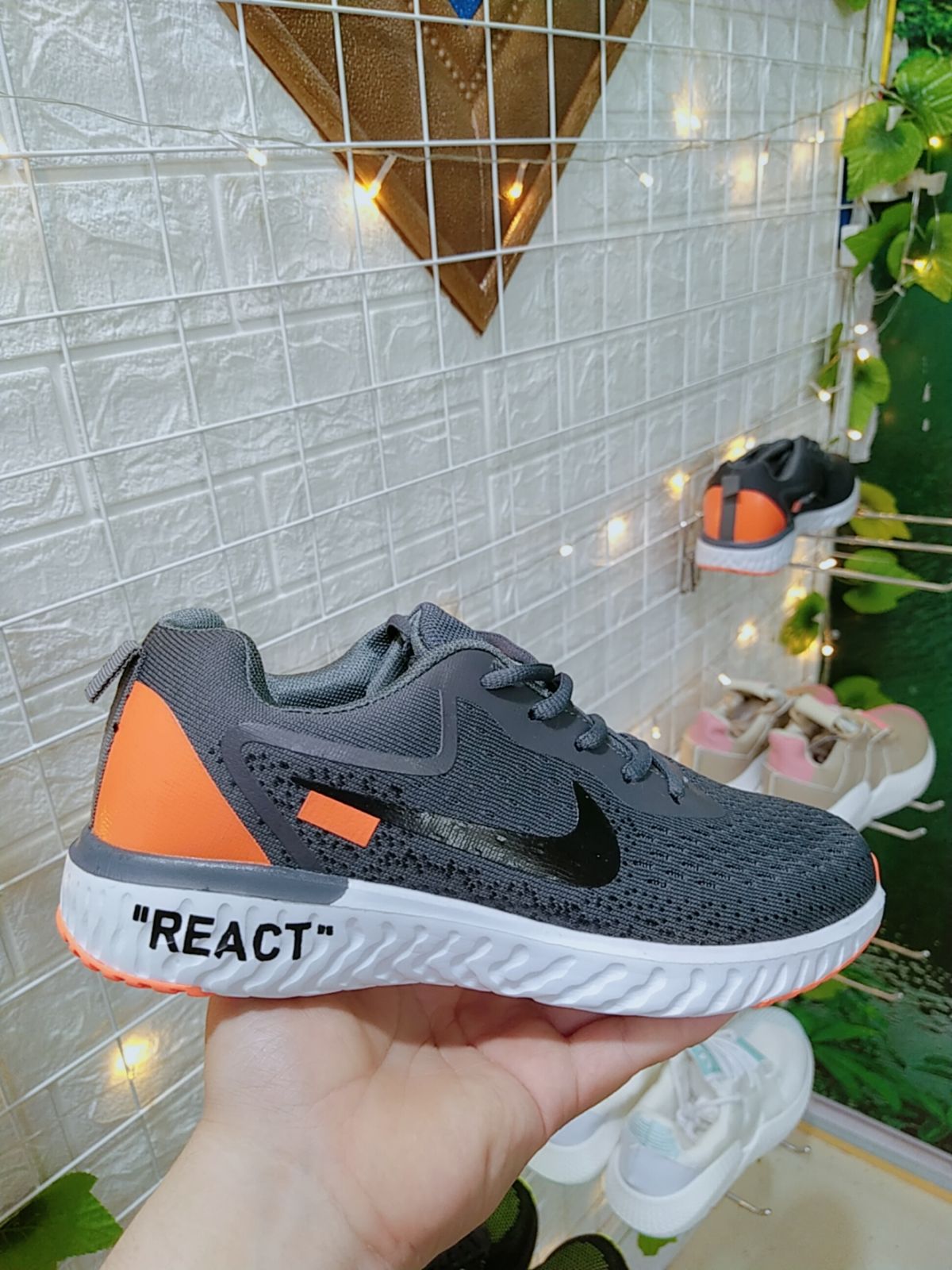 Là 1 Mẫu Mới Của Dòng Giày Thể Thao Nam NiKe REACT Với Tông Nền ghi Xám Kết Hợp Với Cam Nam Tính Đem Lại Cảm Giác Trẻ trung năng động Cho Men ạ