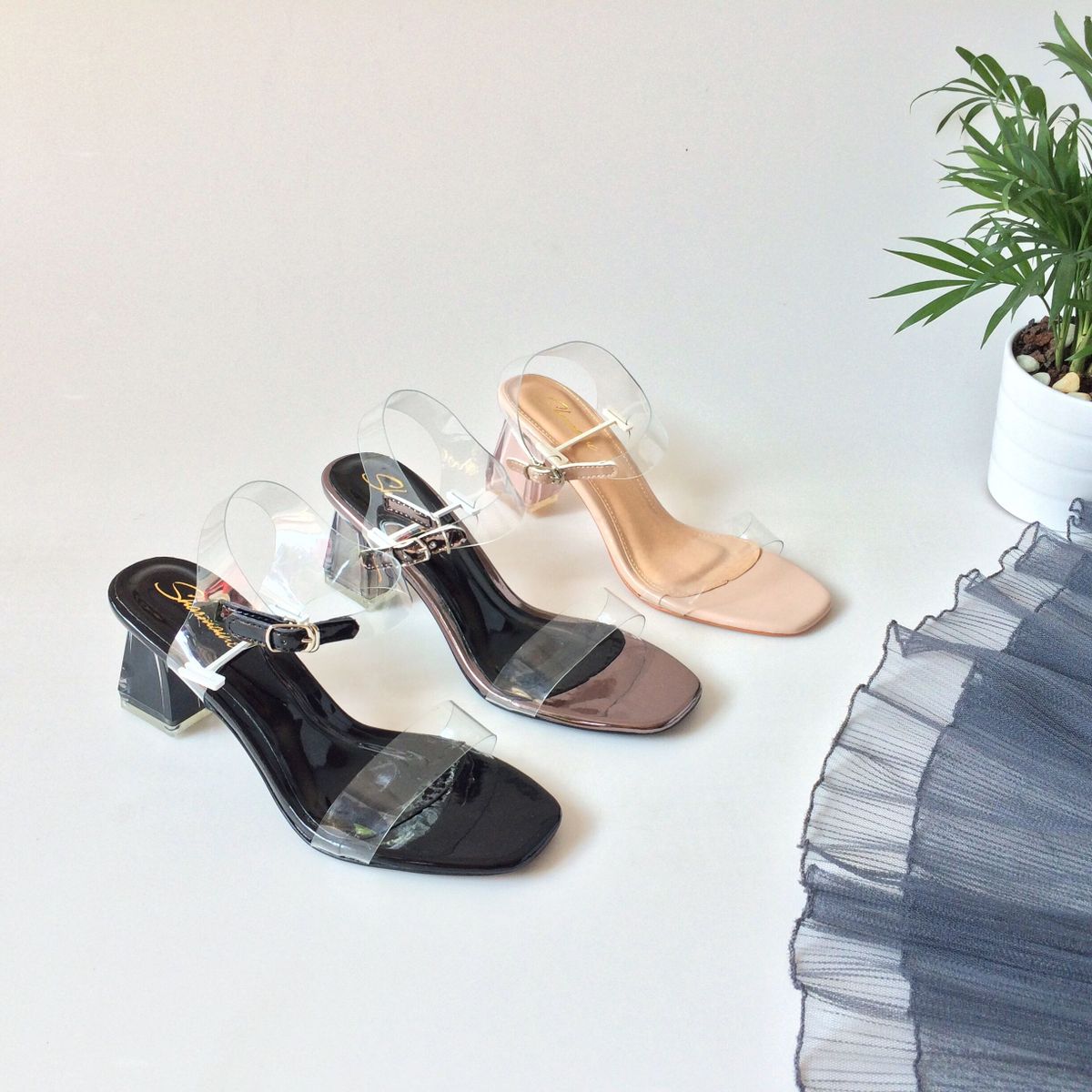 - Giày sandal cao gót gót nhọn, gót trụ, từ 3F đến 12F