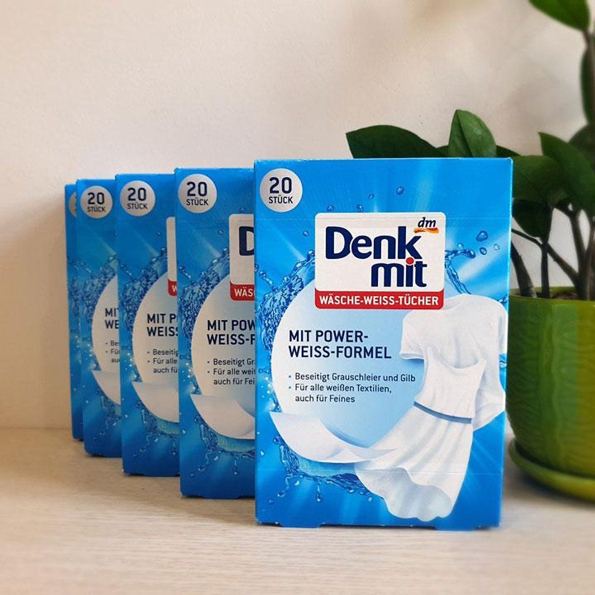 Dùng đc 15-20 lần Thay vì phải ngâm những chiếc áo trắng trong chậu nước tẩy với mùi khó chiu và dùng tay để vò, chà vết ố bẩn với nguy cơ bị hại da tay, các chị em chỉ cần bỏ một miếng vải Denkmit vào máy giặt cùng quần áo.