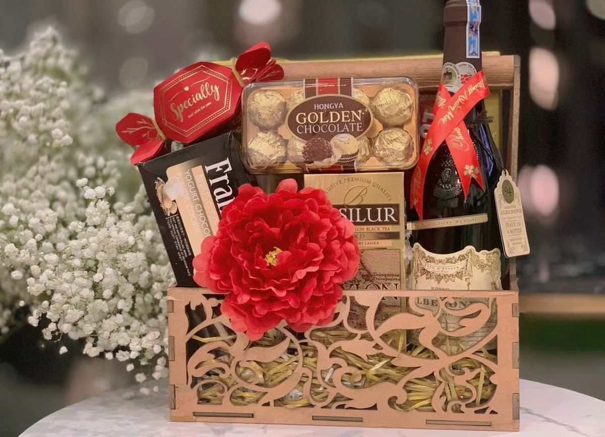 Giỏ gỗ đựng quà tết, hoa quả, họa tiết sang trọng giá sỉ/bán buôn