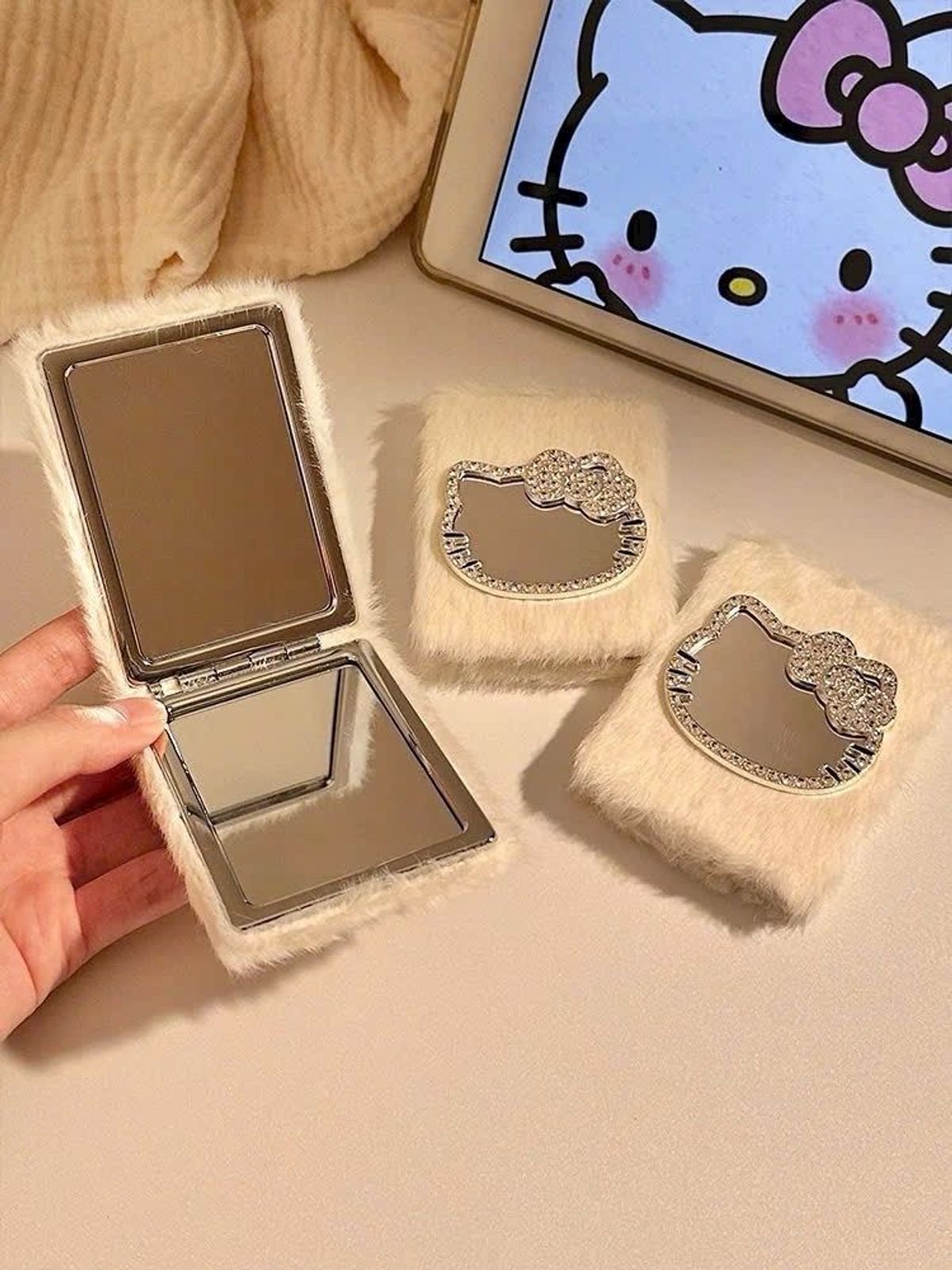 Gương cầm tay , bỏ túi Hình Hellokitti Lông trắng giá sỉ - giá bán buôn