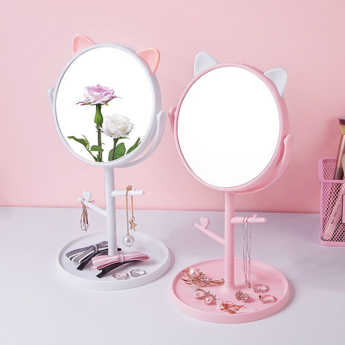 Gương trang điểm để bàn tai mèo có móc treo phụ kiện giá sỉ - giá bán buôn