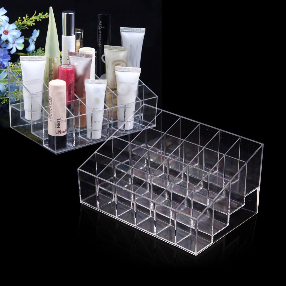 Khay Son 24 Ô giúp sắp xếp son, phấn, mỹ phẩm nhỏ gọn, tiện lợi và dễ dàng lựa chọn khi trang điểm. Thiết kế trong suốt, chắc chắn, giữ mỹ phẩm gọn gàng, tránh thất lạc.