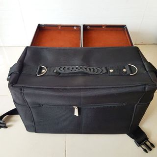 - Bao gồm 1 thùng to có 2 tầng 4 măm vuông nhỏ lót nhung, có thể tháo rời khỏi túi