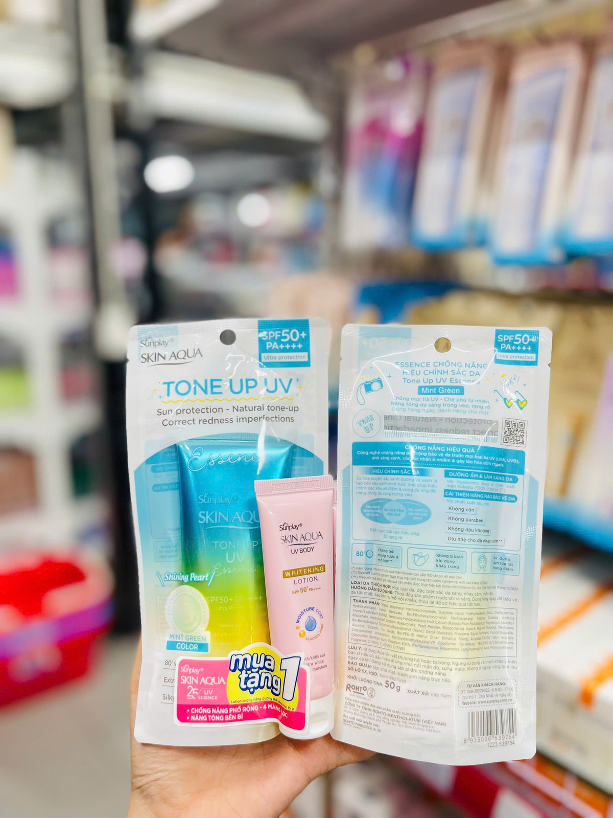 Kem chống nắng Skin Aqua giúp bảo vệ da khỏi tia UV, dưỡng ẩm, làm sáng da, đồng thời chống sạm nám và giảm nguy cơ lão hóa, tặng kèm kem chống nắng body 50g + 10g 🌞💧.