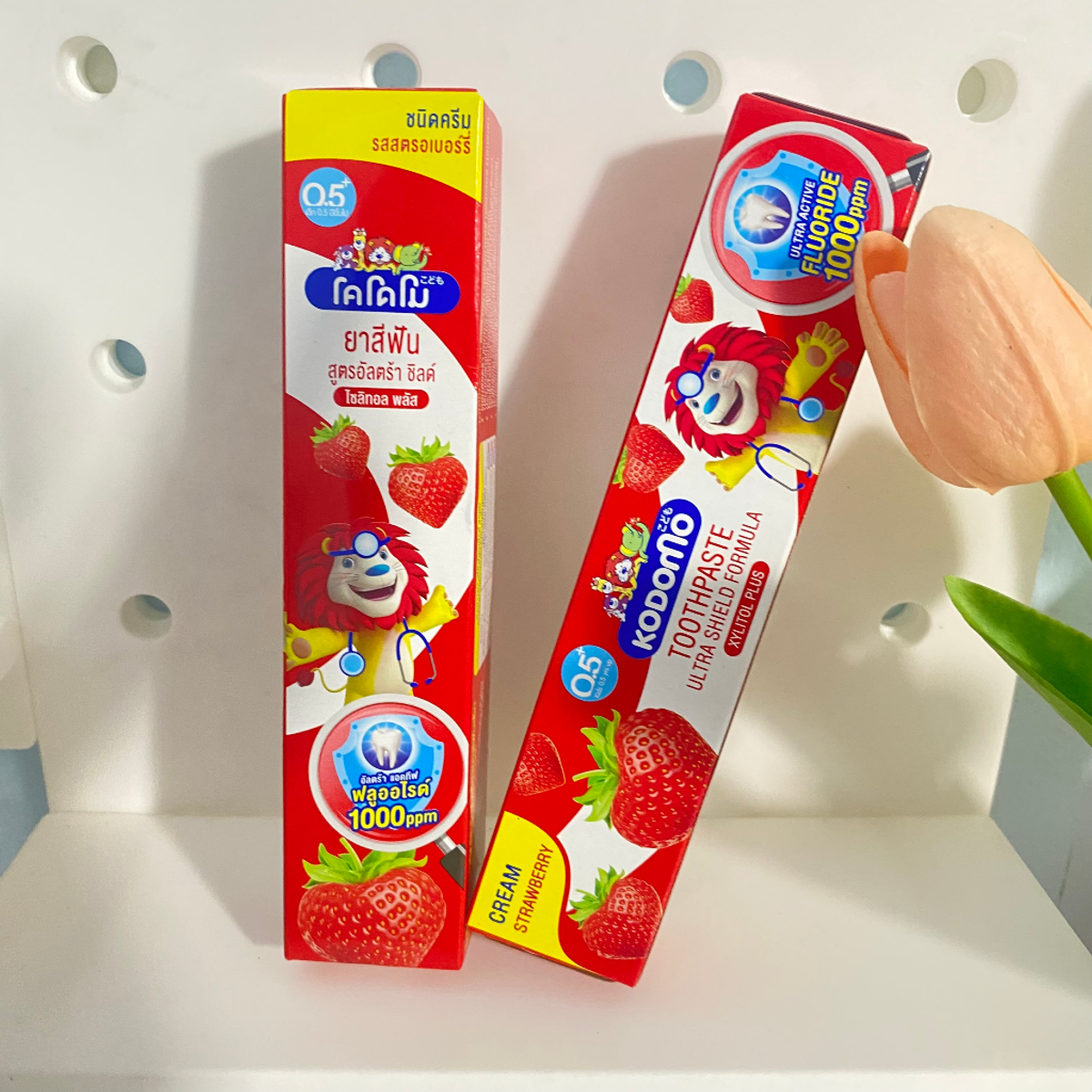 Kem đánh răng Kodomo đỏ giúp bảo vệ răng trẻ em, ngăn ngừa sâu răng và làm sạch hiệu quả 🌟🍓.