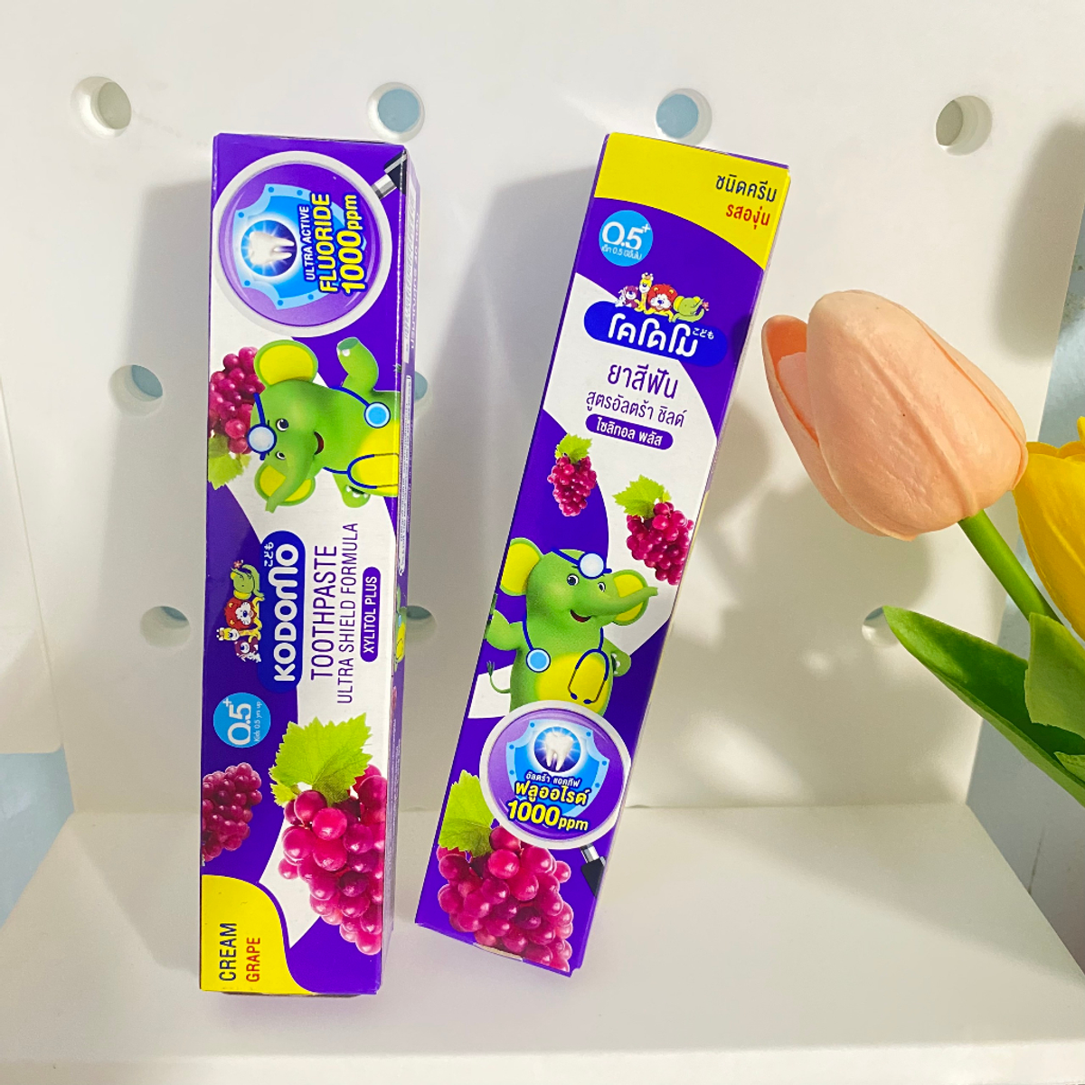 Kem đánh răng Kodomo tím giúp làm sạch răng, ngăn ngừa sâu răng và hơi thở thơm mát cho bé 💖🌿.
