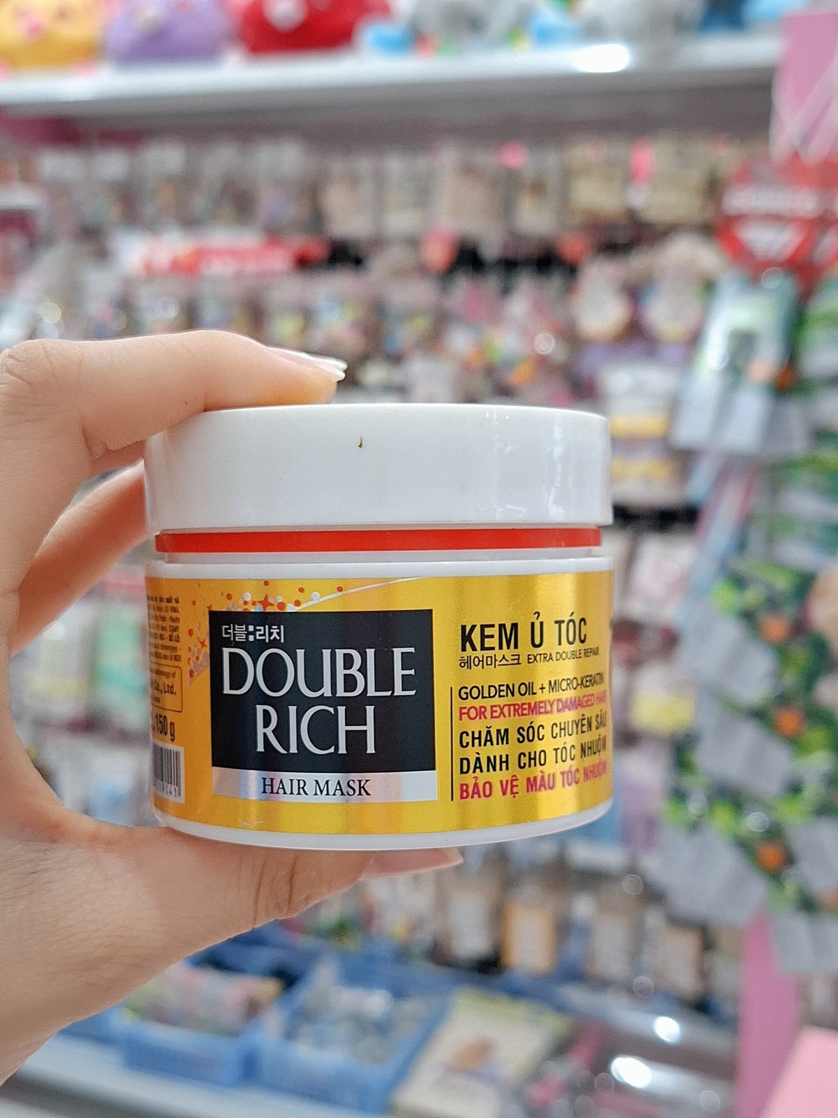 Ủ tóc Double Rich 150g Vàng giúp dưỡng tóc mềm mượt, bóng khỏe và phục hồi hư tổn nhẹ nhàng 🌿✨.
