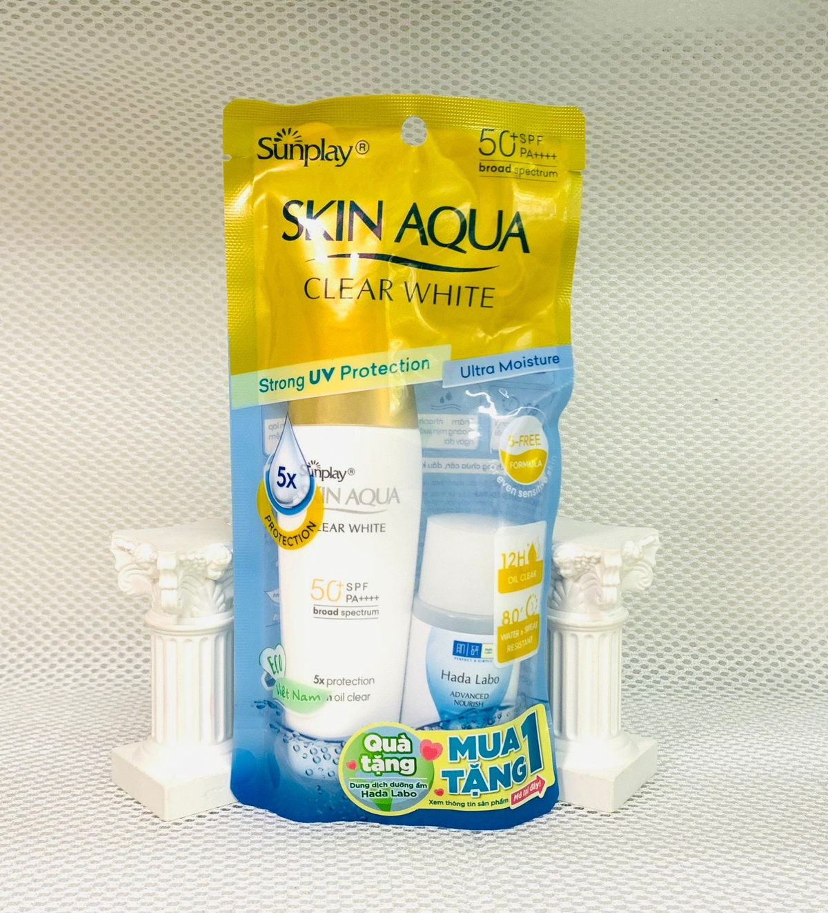 Skin Aqua SPF 50+ PA++++ 55g 🌸 combo chống nắng và tẩy trang, bảo vệ da toàn diện và làm sạch hiệu quả.