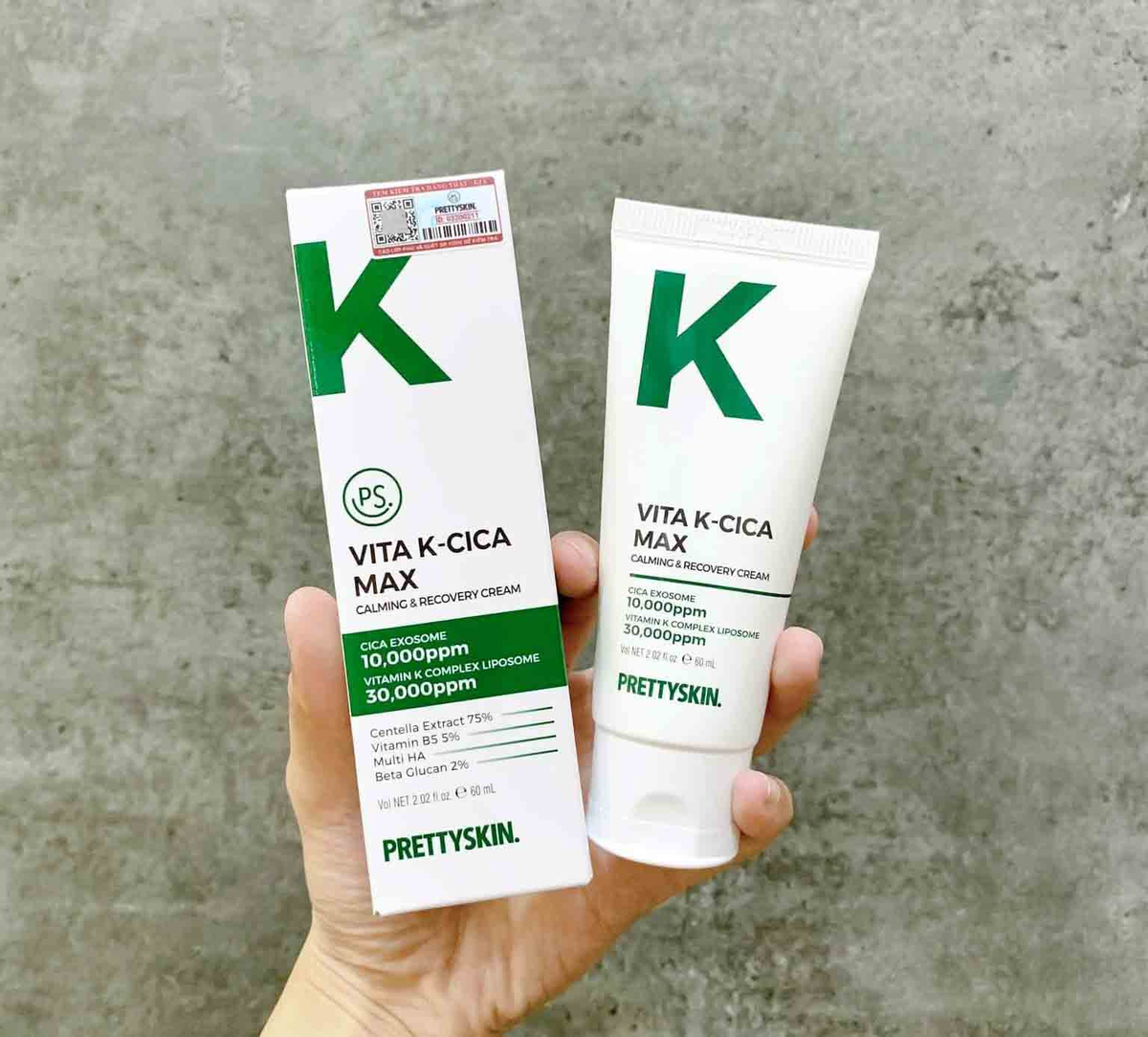 Kem dưỡng Pretty Skin Vita K Cica giúp phục hồi da tổn thương, giảm mẩn đỏ và cấp ẩm sâu.
