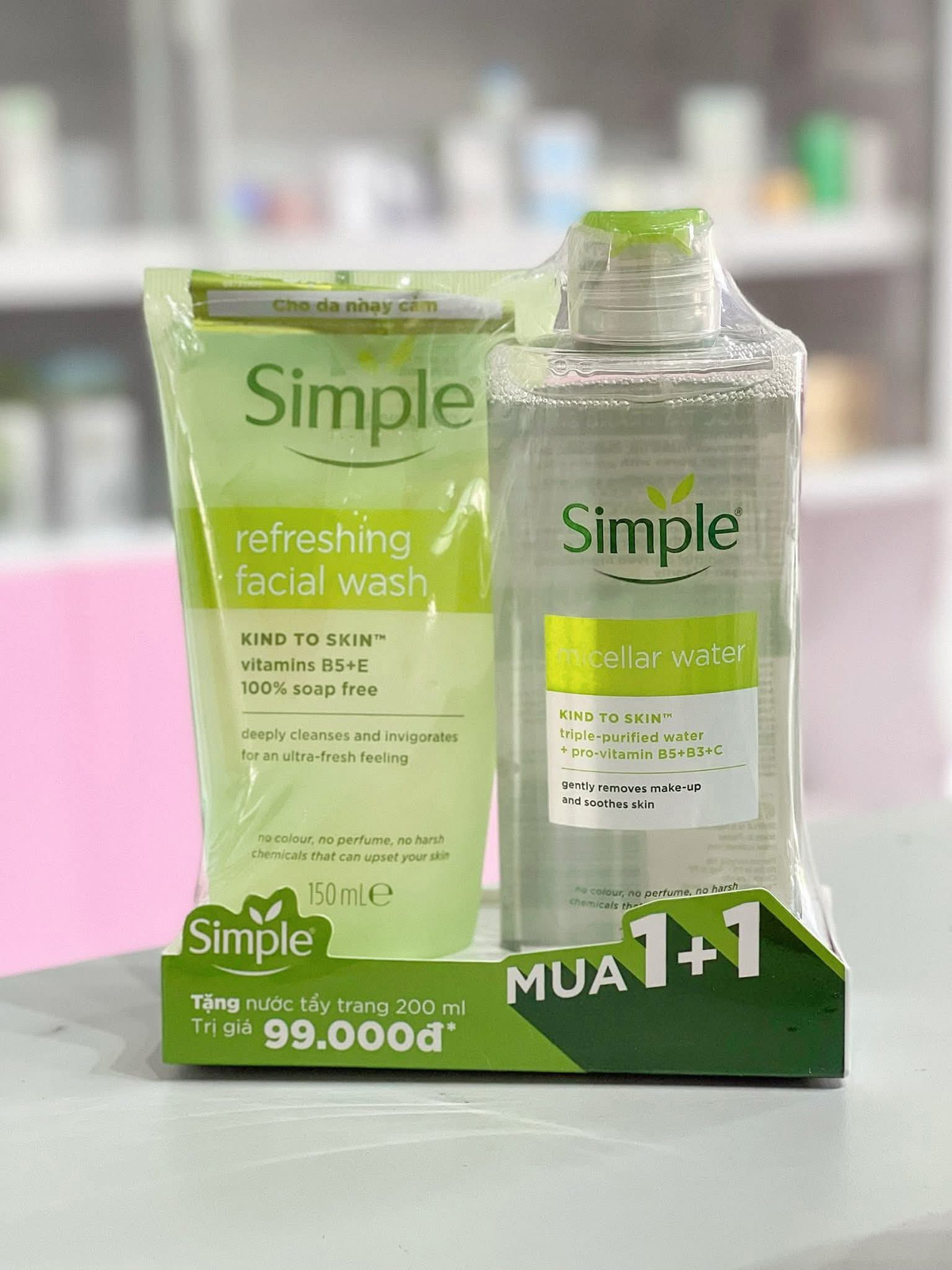 Set Simple Cleanser + Makeup Remover 150ml + 200ml 🌿 giúp làm sạch sâu, loại bỏ bụi bẩn, dầu thừa và lớp trang điểm, giữ da mềm mại, tươi sáng và khỏe mạnh.