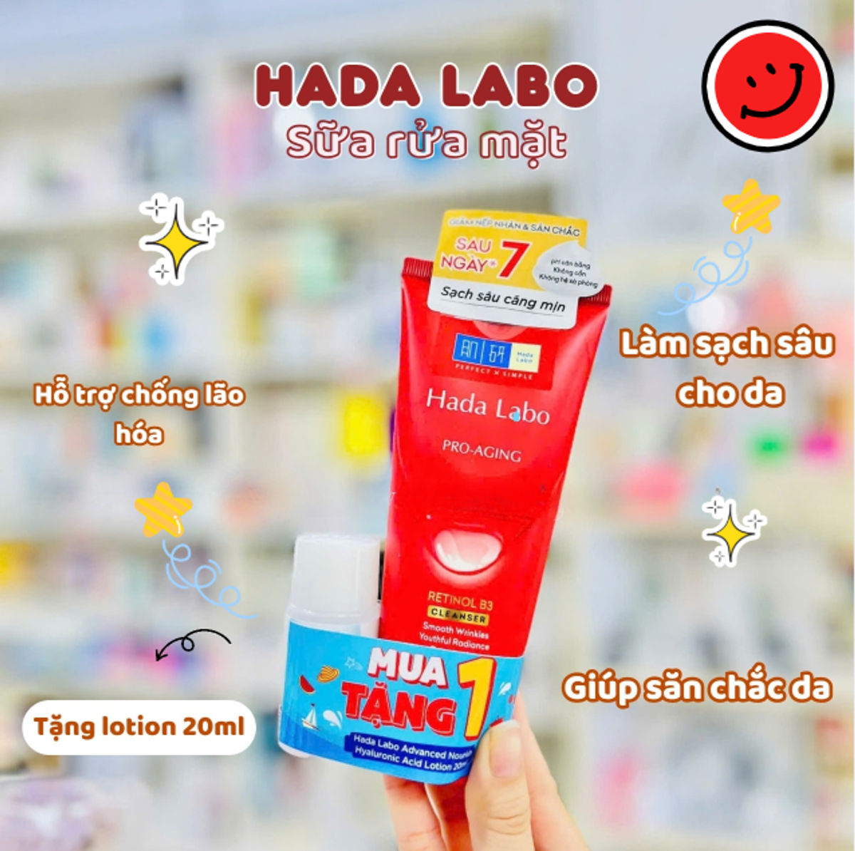 🧴 Sữa rửa mặt Hada Labo đỏ (tặng toner 20ml)