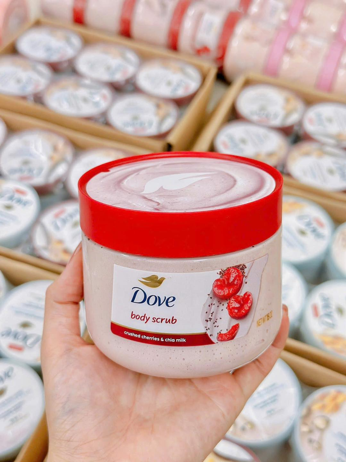 Dove Exfoliating Scrub 425g Cherry 🍒 giúp tẩy tế bào chết, dưỡng ẩm và làm sáng da, mang lại làn da mềm mại, tươi sáng và căng mịn tự nhiên.