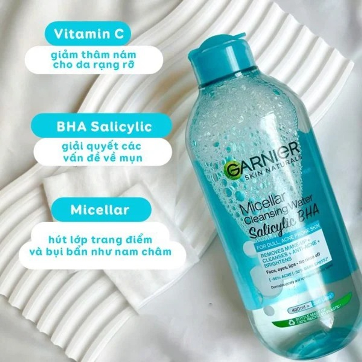Garnier Micellar Blue BHA 400ml 💙 giúp tẩy trang, kiềm dầu, làm sạch sâu và ngăn ngừa mụn, mang lại làn da mịn màng, sáng khỏe và khô thoáng.