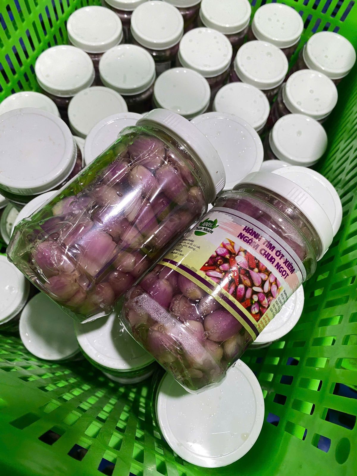 ***Tỏi Lý Sơn - Hành Tím Ngâm Ớt Xiêm xanh hủ 500g