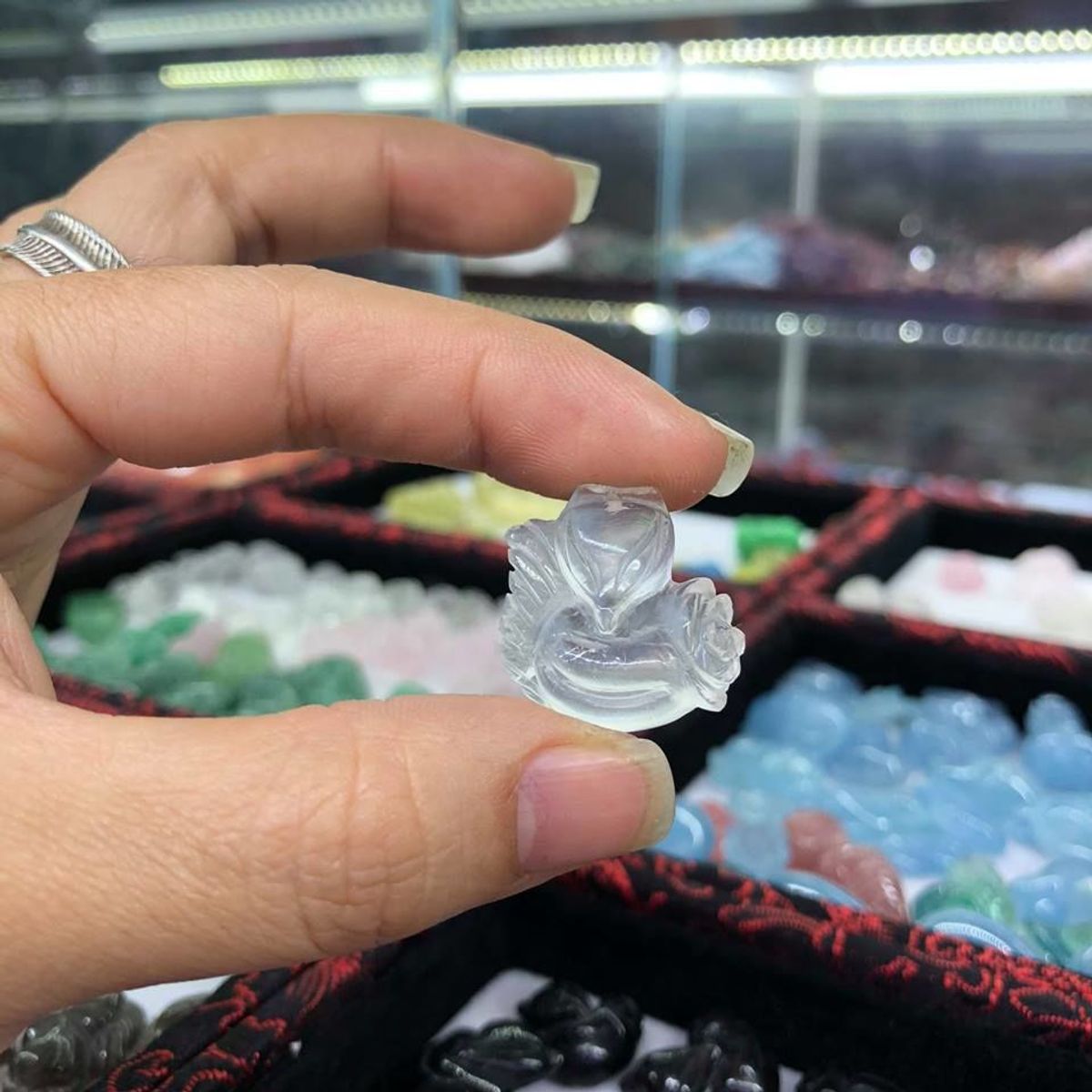 Hồ ly thạch anh trắng ôm hoa - MSP 649 giá sỉ - giá bán buôn