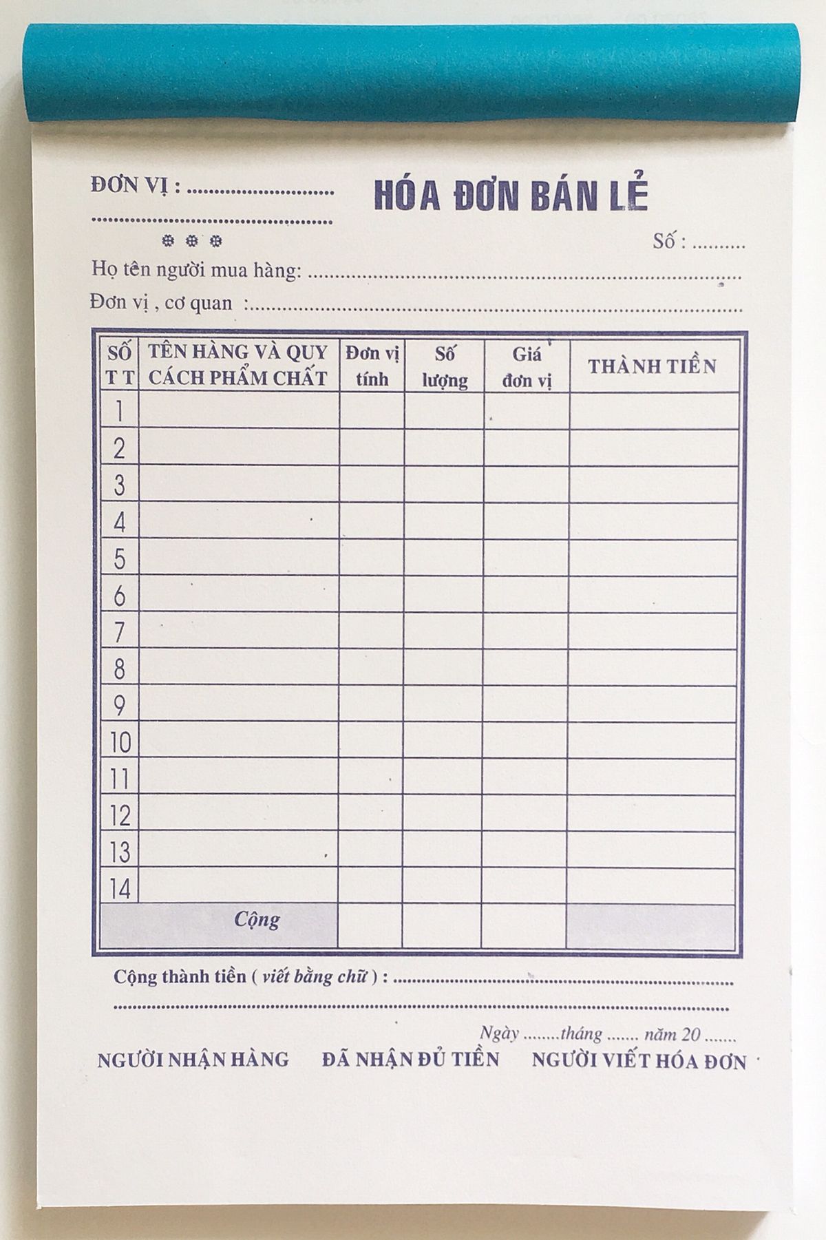 Hóa đơn bán lẻ giấy ford đẹp