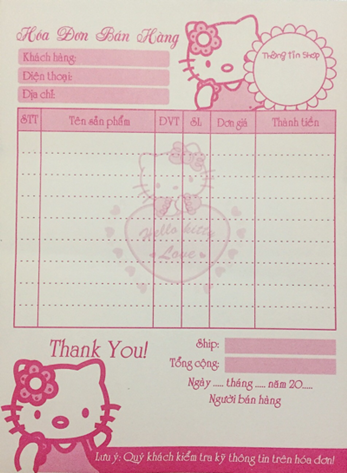 Hoá đơn kity khổ a6 2 liên Quy cách: 100 tờ/q In ofset siêu nét Giá sỉ: 50q: 11.000₫/q 100q: 10.000₫/q