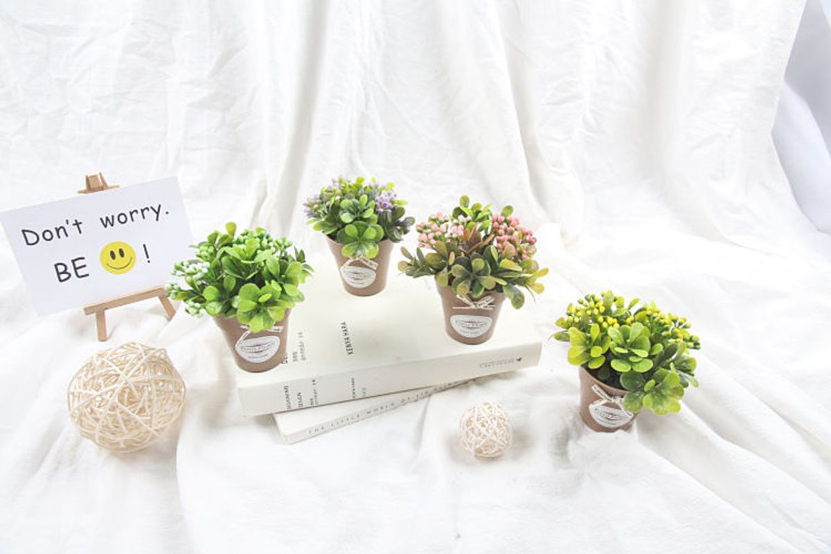 Chất liệu: nhựa , chậu nhựa,hoa giả Quà tặng thích hợp cho bạn bè, người thân, hoặc trang trí bàn, kệ, gốc học tập.... #hoamini #chauhoadeban #hoalua #chauhoanho