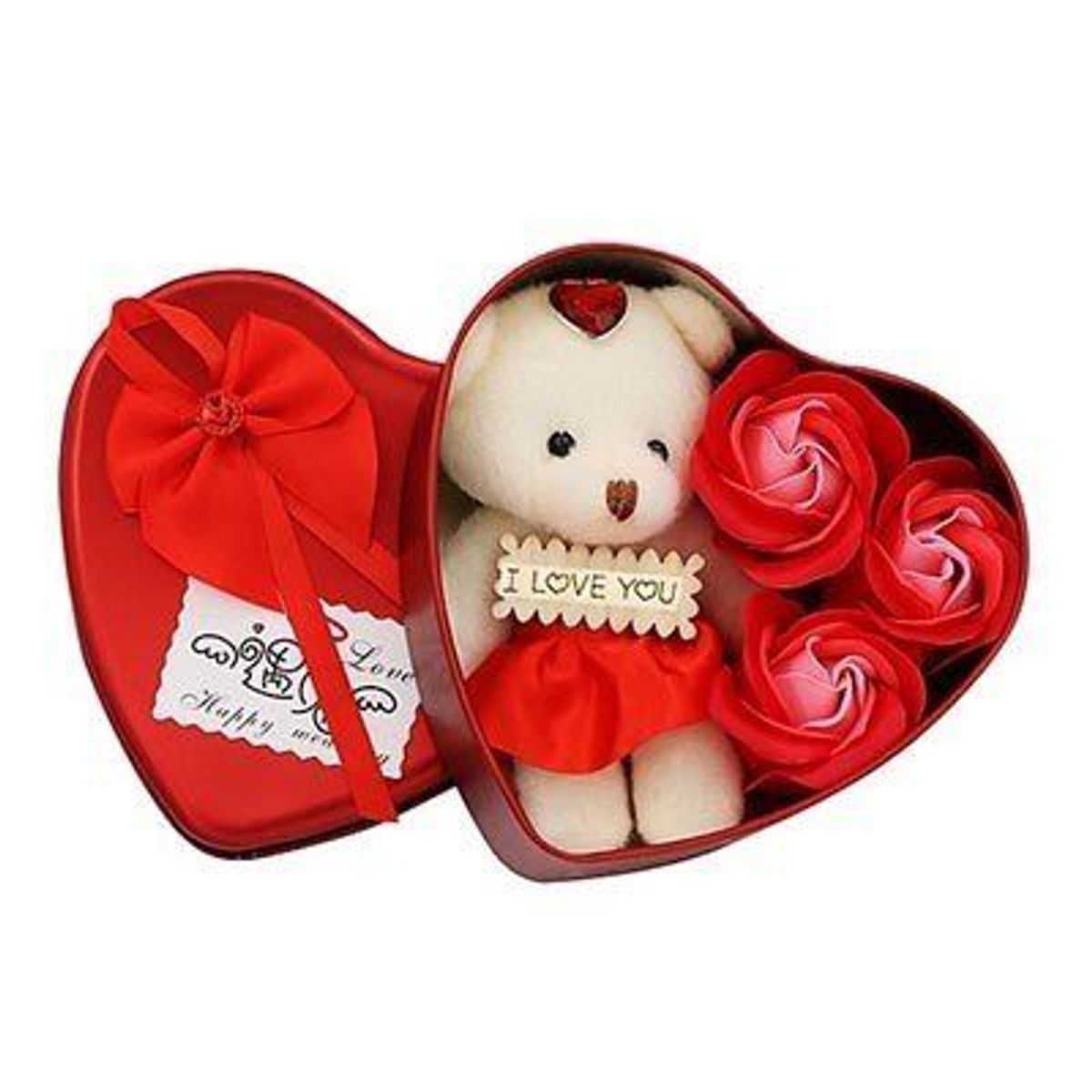 Hoa hồng 3 Bông kèm gấu Trái Tim