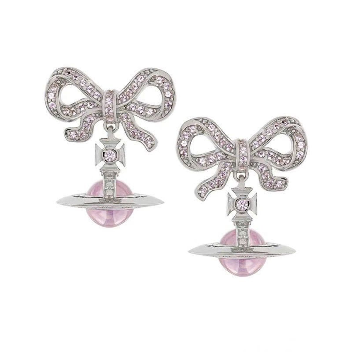 🪐Tỏa sáng rực rỡ với thiết kế hình nơ mềm mại đính đầy pha lê lấp lánh, đôi bông tai này mang đến vẻ đẹp ngọt ngào nhưng không kém phần tinh tế. Điểm nhấn chính là biểu tượng hành tinh nhỏ xinh với viên đá màu hồng pastel và xanh ngọc bích nhẹ nhàng, tạo nên cảm giác mộng mơ và quý phái.