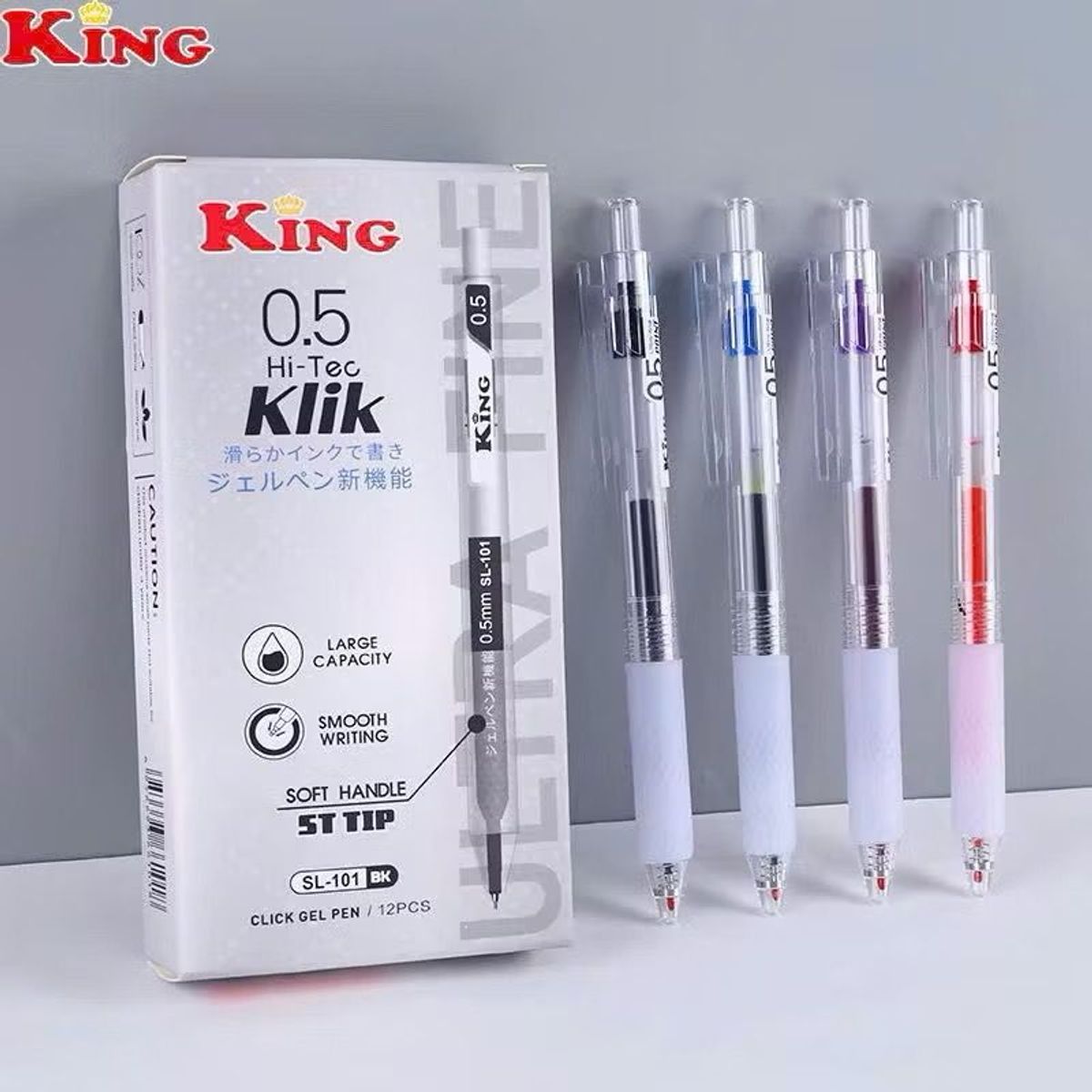 - Bút Bi Đầu Bấm King SL-101 (Loại tốt) ngòi 0.5mm cho nét chữ đều và đẹp, uyển chuyển, là loại bút bi đầu bấm mực Gel, dùng mực tươi có màu mực đẹp.