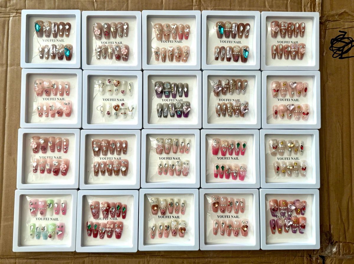 HỘP 12 MÓNG TAY FULL ĐÁ KÈM KEO (hộp nắp bật), rất nhiều mẫu mình chụp tượng trưng thôi