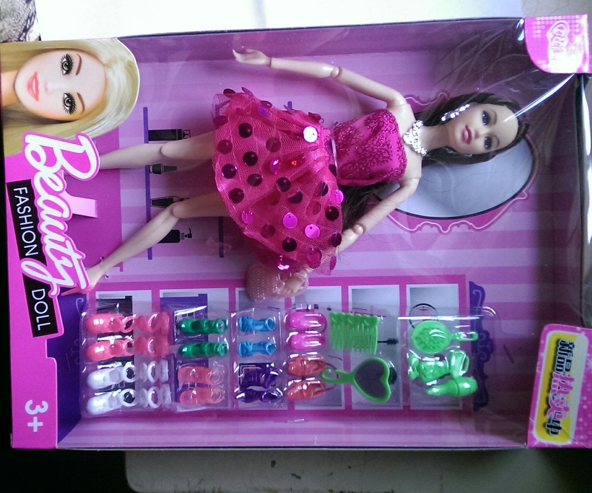 Hộp búp bê thời trang với giày và gương lược, tha hồ cho bé thay đổi và trang điểm cho búp bê của mình