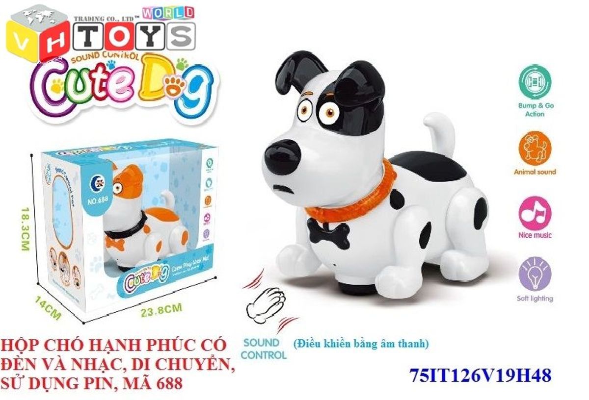 HỘP CHÓ HẠNH PHÚC CÓ ĐÈN VÀ NHẠC DI CHUYỂN SỬ DỤNG PIN MÃ 688 giá sỉ/bán buôn