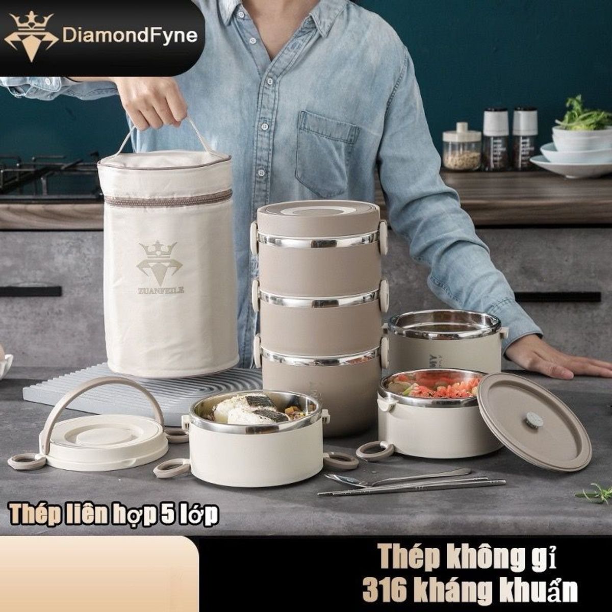 Mỗi tầng có dung tích lớn, đáp ứng nhu cầu bữa ăn phong phú. Thoải mái đựng thực phẩm đa dạng mà không lo chật chội hay lẫn lộn