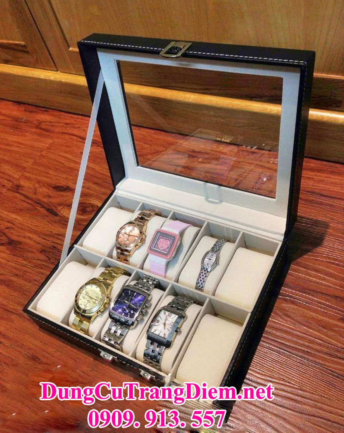 Hộp đựng đồng hồ 10 chiếc đơn giản tiêu chí gọn gàng, giúp bạn bảo về chiếc đồng hồ của bạn. Màu sắc sang trọng, bên trong là lớp nhung kem mềm mại, giúp đồng hồ tránh bị hư hỏng, trầy xước. Ngoài ra cũng là vật dụng trang trí xinh sắn cho góc bàn trang điểm của bạn.