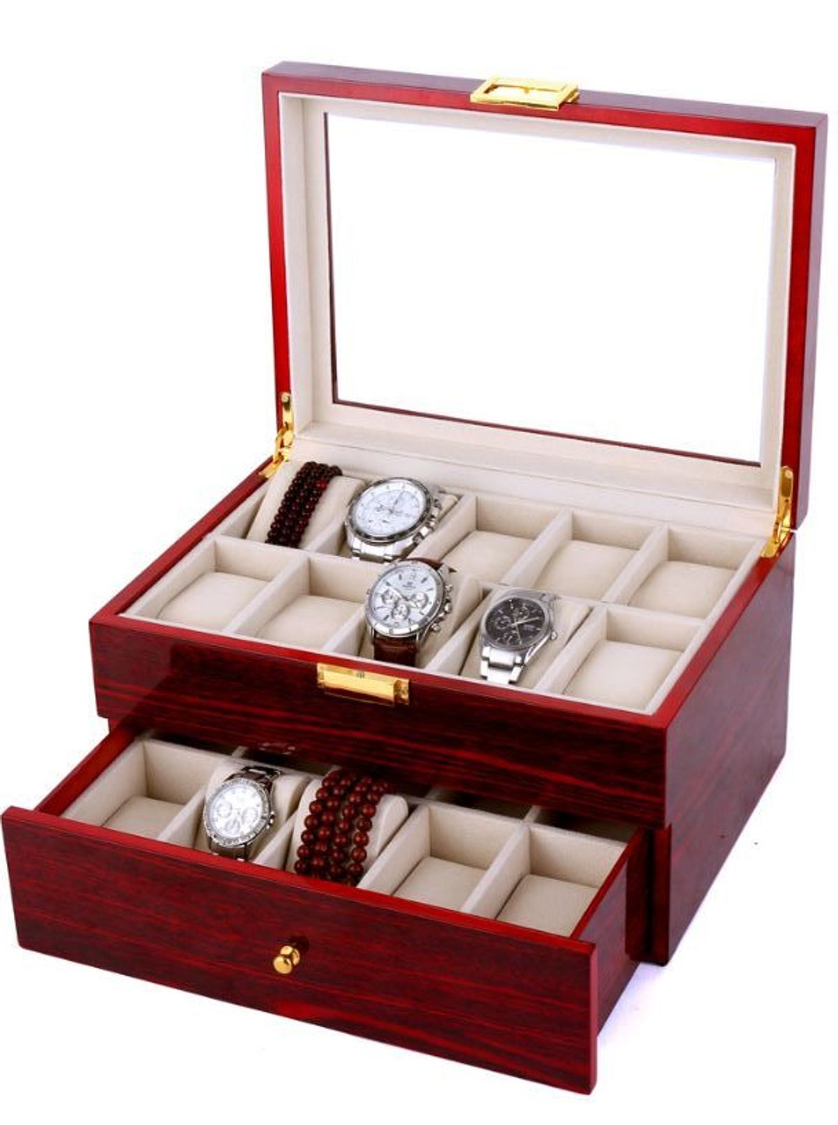 Hộp đựng đồng hồ 20 chiếc gỗ, 2 tầng, bằng gỗ nguyên chất. Đựng được 2 chiếc đồng hồ. Siêu gọn và sang trọng. Vừa trang trí, vừa sử dụng hằng ngày tiện lợi. Kích thước: 27 x 17 x20 cm