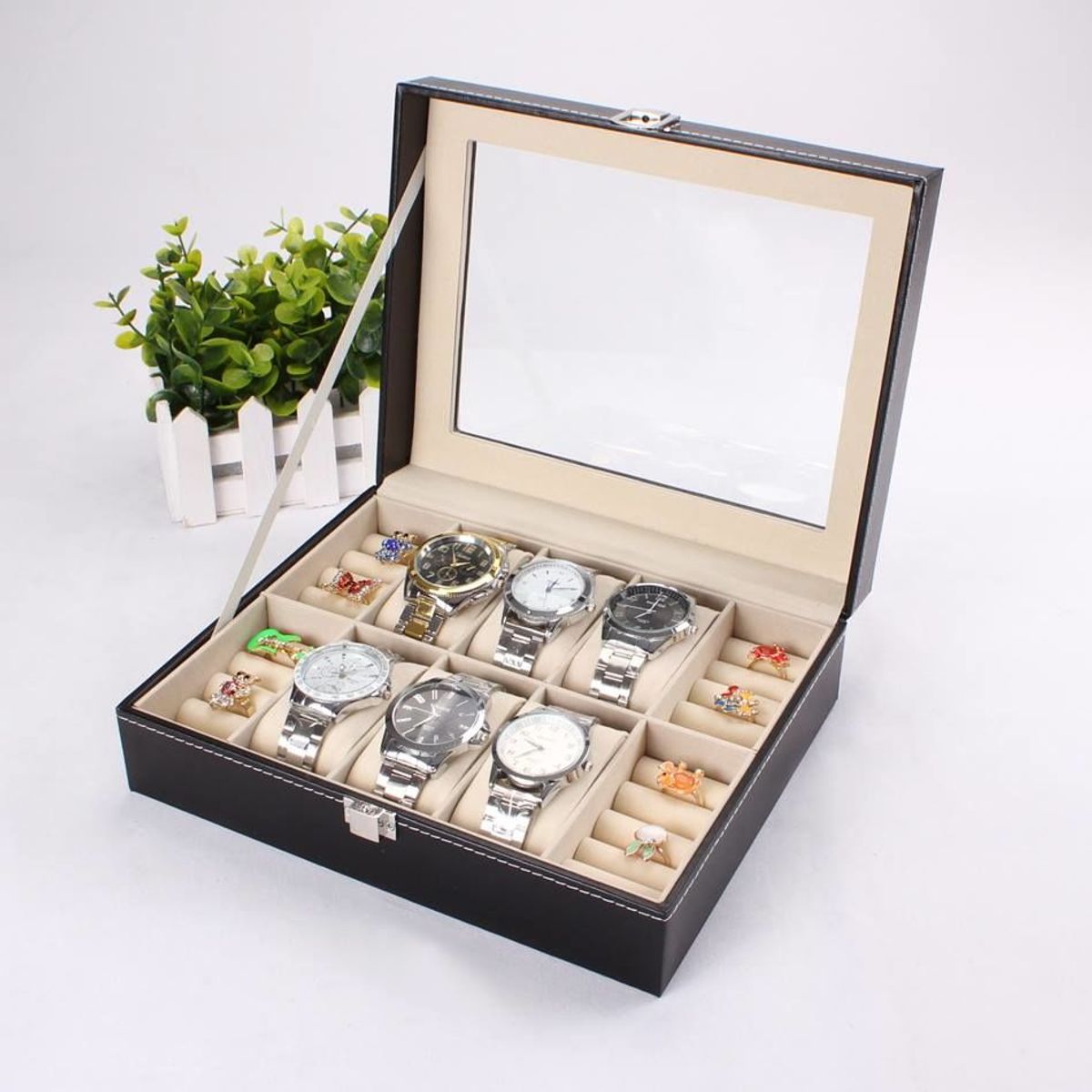 Hộp đựng đồng hồ 6 chiếc và 4 ngăn trang sức đơn giản tiêu chí gọn gàng, giúp bạn bảo về chiếc đồng hồ của bạn. Màu sắc sang trọng, bên trong là lớp nhung kem mềm mại, giúp đồng hồ tránh bị hư hỏng, trầy xước. Ngoài ra cũng là vật dụng trang trí xinh sắn cho góc bàn trang điểm của mình