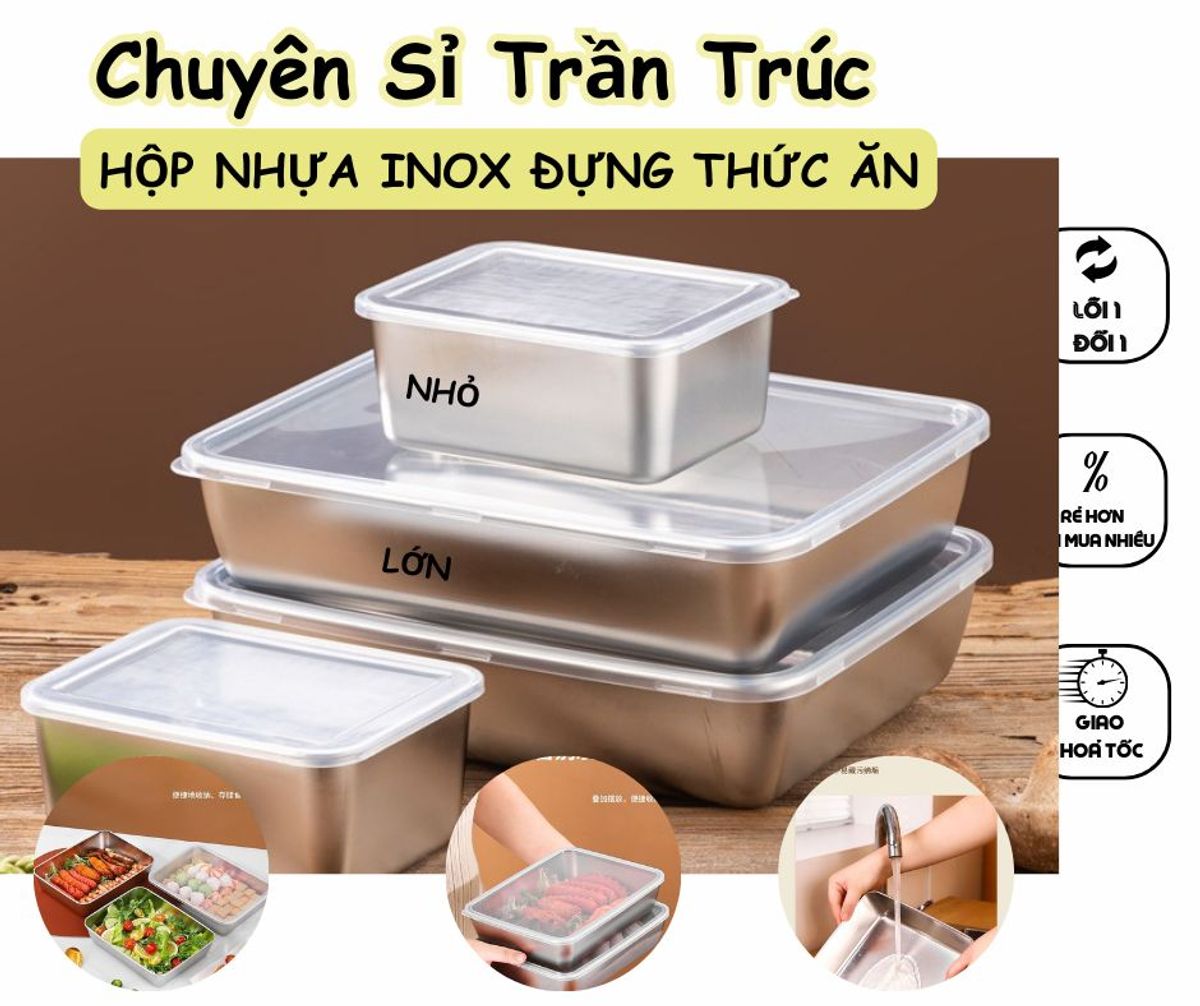 Hộp inox nắp nhựa SUS 304 ( nhỏ , lớn) giá sỉ - giá bán buôn
