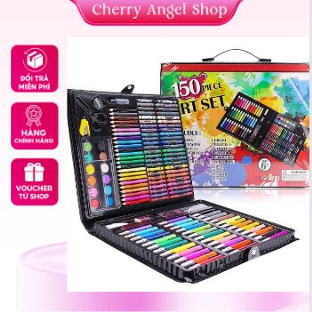 - Bộ sản phẩm bao gồm 150 chi tiết bao gồm bút màu và các dụng cụ vẽ cho bé yêu thỏa sức sáng tạo .
