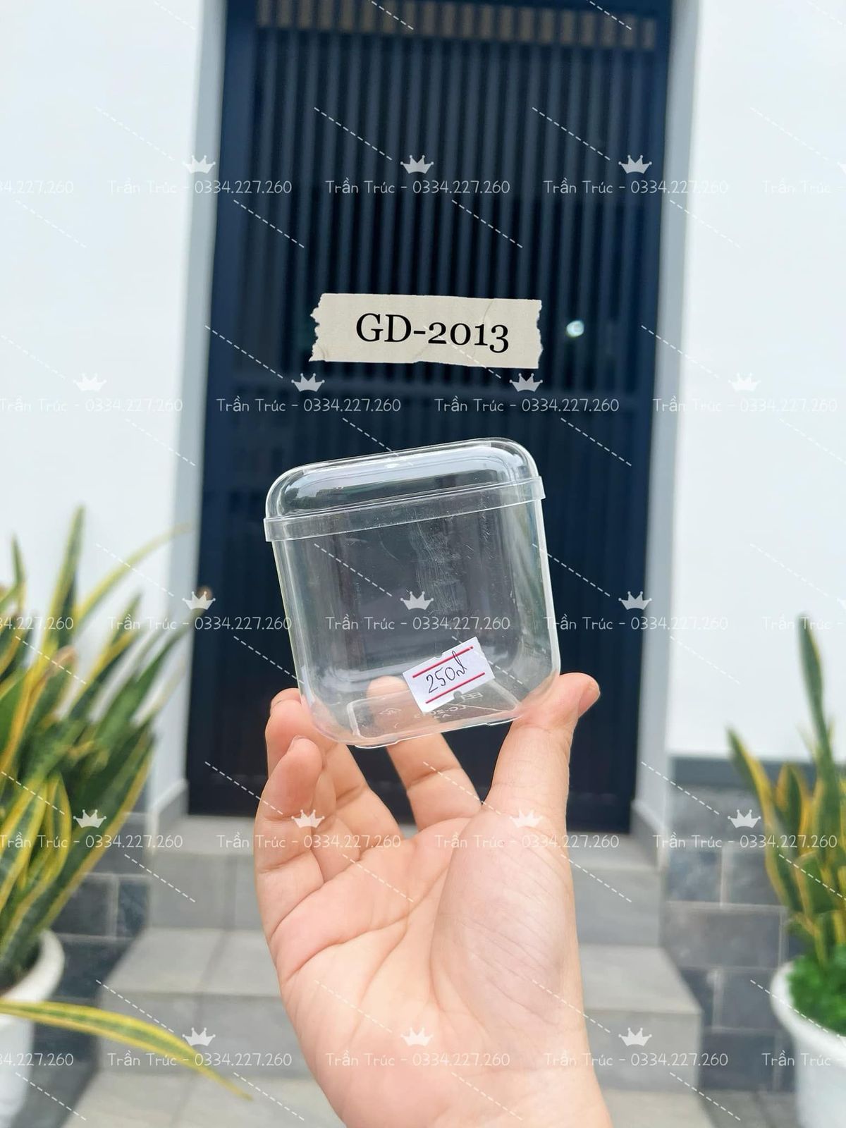 Hộp mica vuông GD-2013 là một loại hộp đựng bằng nhựa mica trong suốt, có hình vuông với kích thước phổ biến là 8.3cm x 7.4cm x 7.4cm. Hộp được làm từ nhựa mica cao cấp, có độ bền cao, chịu được va đập tốt và an toàn cho thực phẩm. Hộp mica vuông GD-2013 thường được sử dụng để đựng bánh, kẹo, trái cây, quà tặng,...