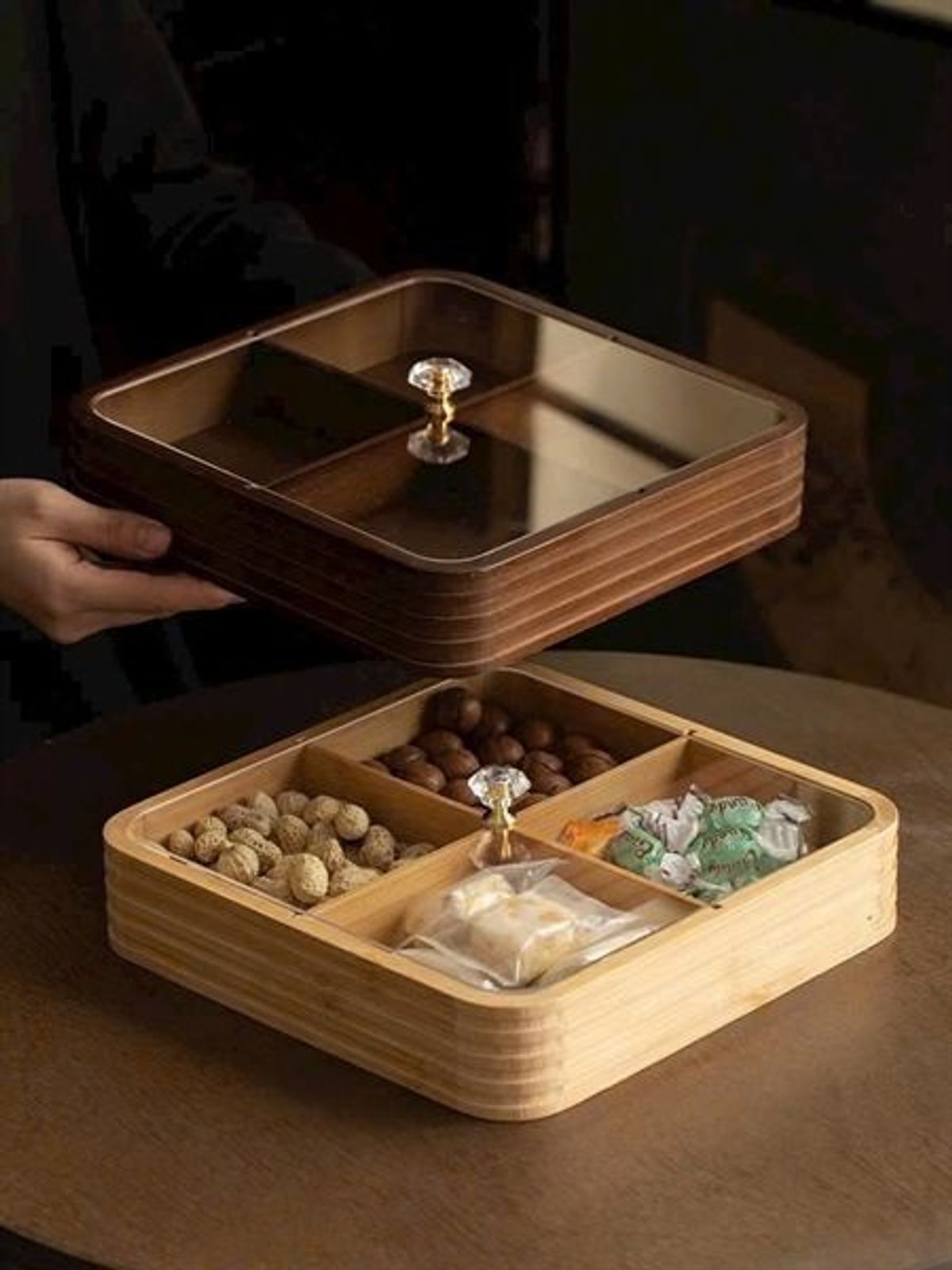 Hộp Mứt Vuông 4 Ngăn Gỗ Xám ( THÙNG 24C) giá sỉ - giá bán buôn