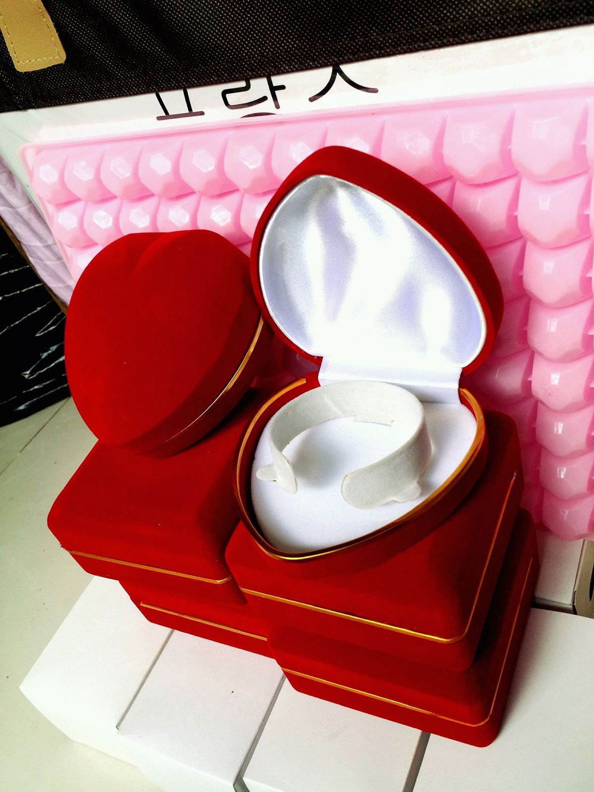 hộp nhung tim đựng vòng kích thước 96x96x40