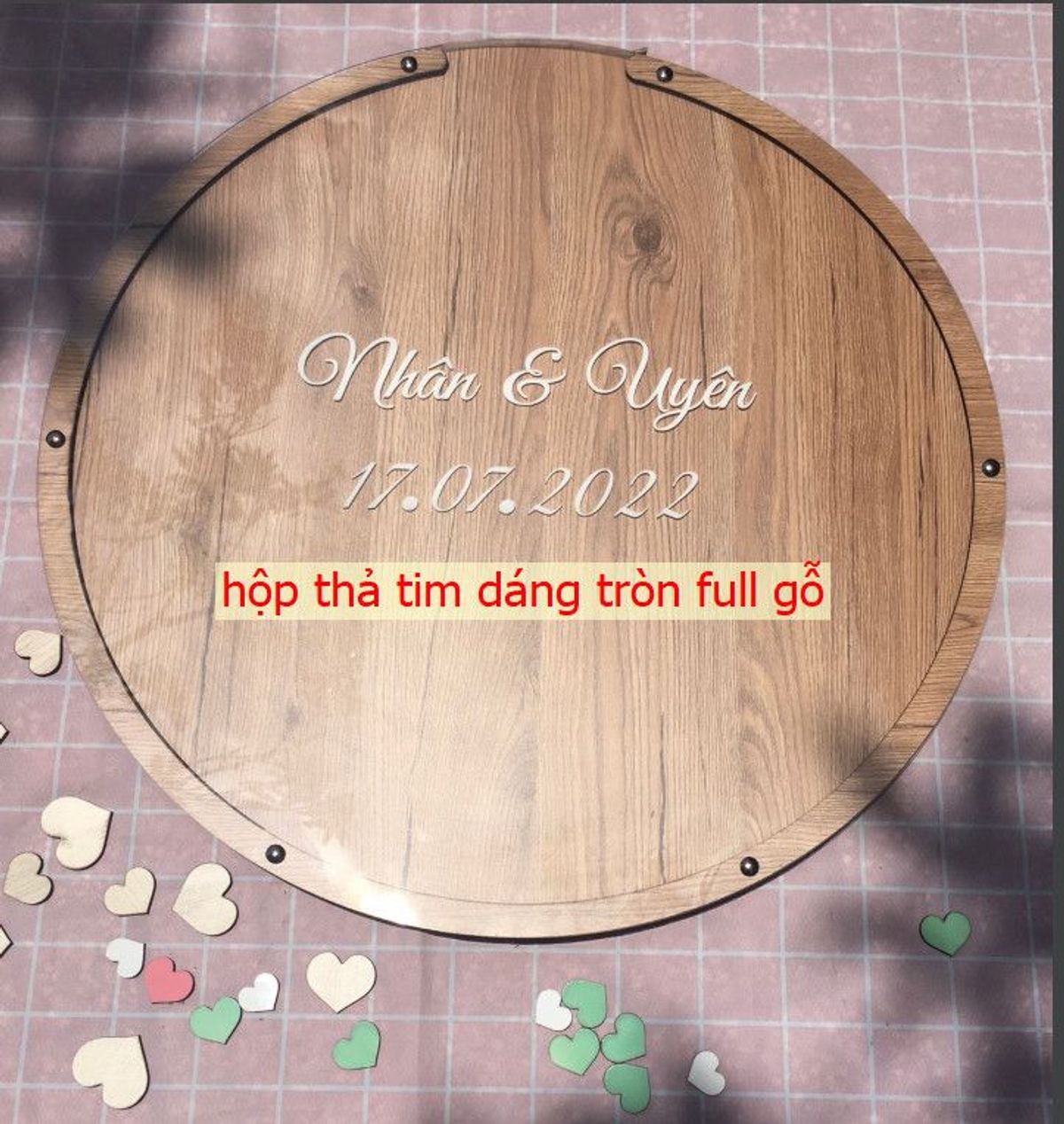 Hộp đựng tim bằng gỗ khắc tên dâu rể
